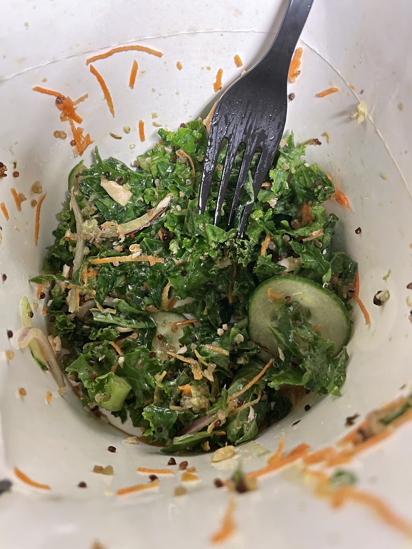 Read moreFood: This was the most terrible salad I’ve ever eaten. Anyone who knows a thing or two about kale is that you don’t eat the stem. You’re supposed to strip the leaves and toss out the stems. Those stems were separated from those leaves, but they were included in the salad! That’s the greens portion. Now on to the protein. The salmon was overcooked and incredibly under seasoned. You’d think the salad dressing would compensate that, but the dressing was nearly flavorless! Back to the salmon, some pieces of it were hard. Hard like plastic pieces. I had to spit them out. Quinoa was undercooked, so it was like eating plastic pellets. This was the most disgusting salad; I couldn’t even finish it.