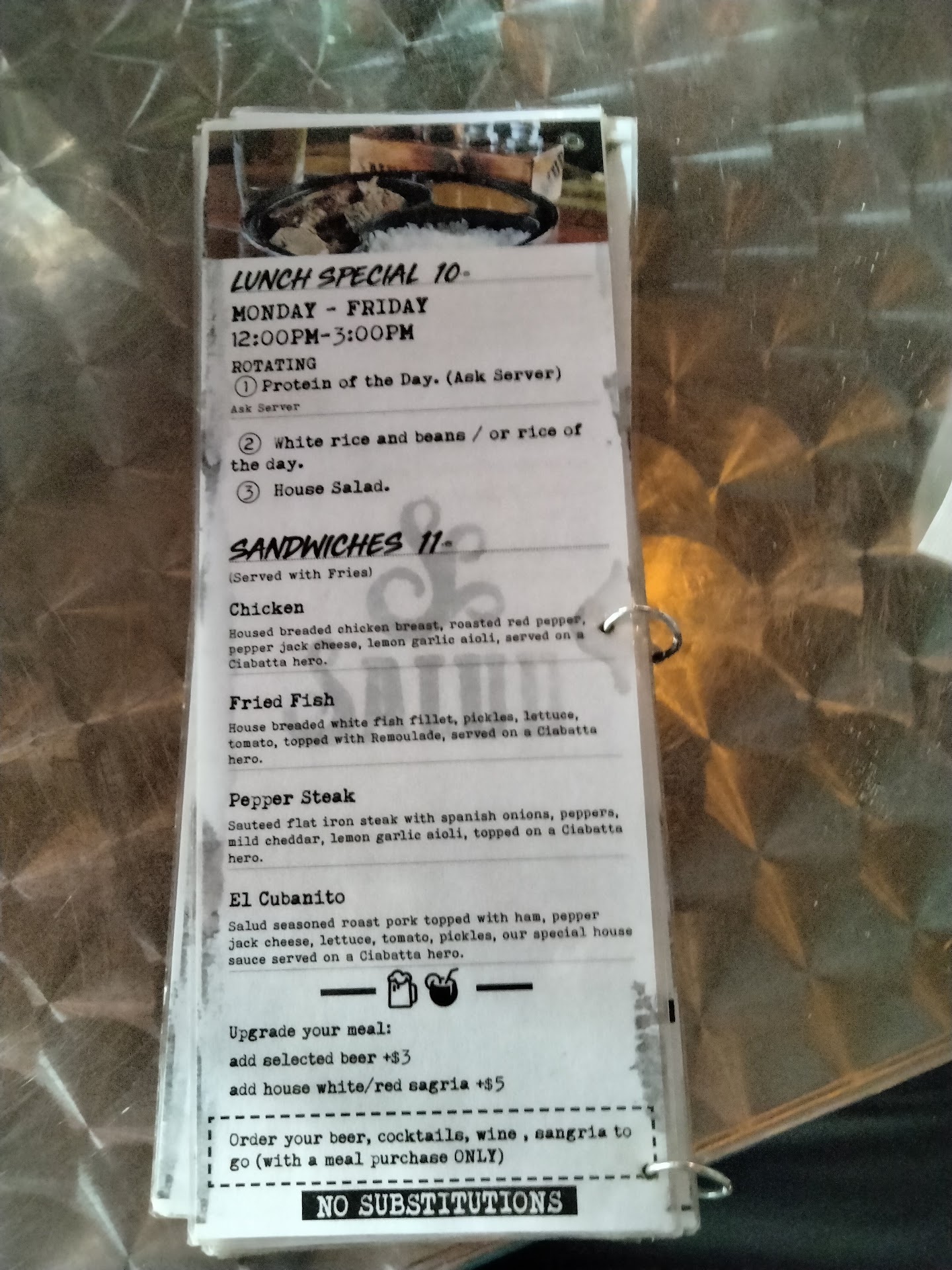 Read moreWell I'm going to say the environment is great. Great energy with music and the people are nice. They have a projector that's like 90 inches and a 55 inch TV to watch your sports or major events live while sitting. But I have to say their service of getting the food done and to you sucks. If you think Applebee's or IHOP takes long to bring you food. Lmao you are in for a treat. Yeah they are local and all but you gotta be kidding me. All I ordered was empenadas like $5 for 2 of them... and $4 for their Fries. You get exactly 10 small ass Fries (a happy meal Fries are more satisfying I'm telling you). My partner ordered the skirt steak and when she got it, it was medium rare bloody. The waitress asked her how she wanted it and specifically she stated to her "well done"... And for the food a 25 minute or more wait. I finished the empenadas and fries in 3 minutes like a 4 piece nugget with Fries from McDonald's. This is the 2nd time I've been here and I'm writing this review while sitting here and man they are slow. With just getting the food to you. I asked for a coke... okay, the waitress gets the Can and put moderate ice and only puts half the can of coke in the glass. I drank the glass of coke faster than a damn Caprison. I watched her make the drink so I'm not bluffing... as I stated I don't bash a place but I'm giving you my honest experience and facts upon my money being spent. Oh I got 2 half cans of coke but I got charge for 2 which came out to $4... $2 for each. And 1 can is rated at $.50 a can if bought in bulk... Go to Salud for drinks and get to the bar. Don't go there trying to impress a female or if your really hungry because you will be really disappointed. Slow service even when the place...