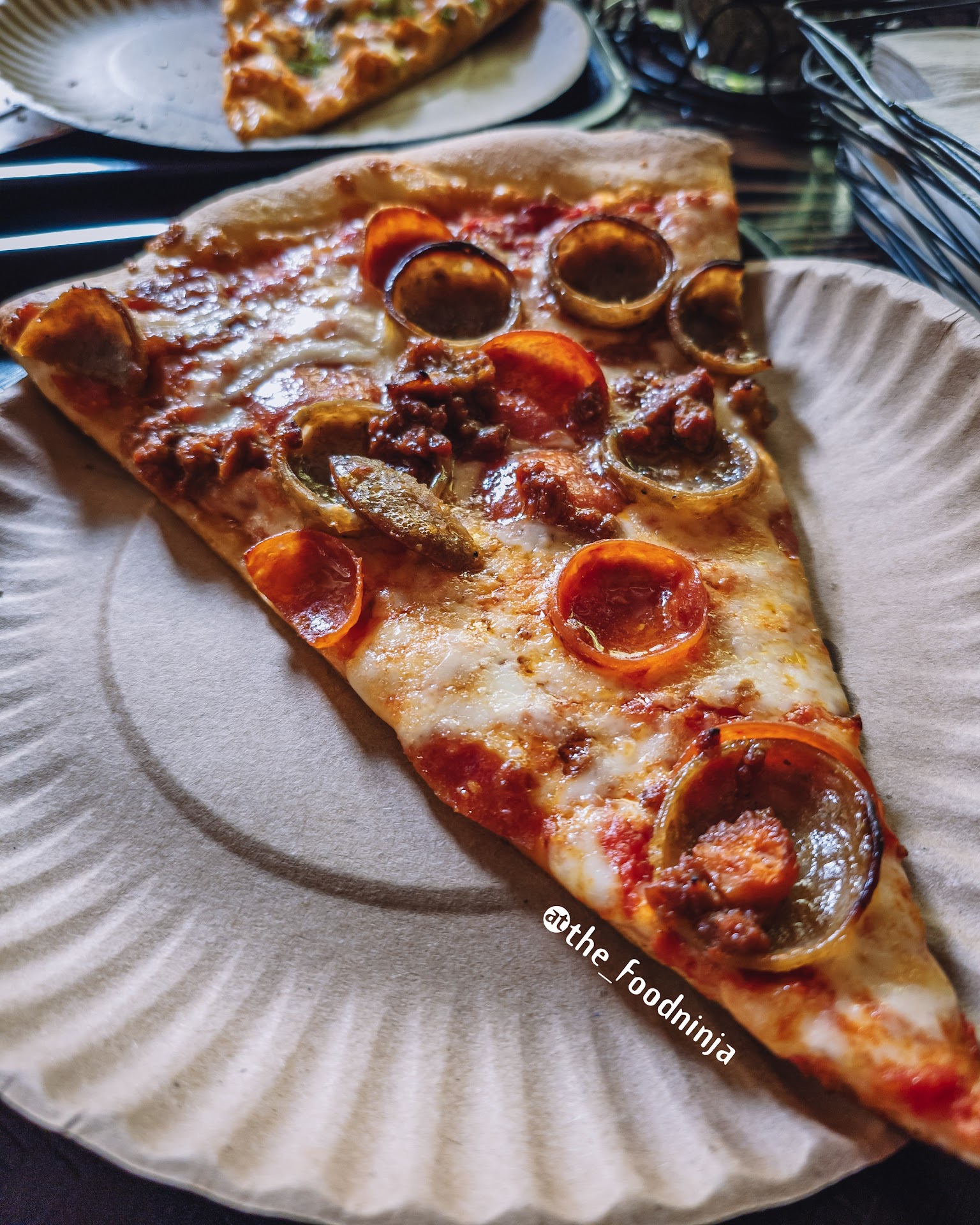 My friend and I stopped in for a couple of slices and went straight for the case. The Meat Lovers slice is a savory carnival of mozzarella, tomato sauce, ground beef, pepperoni, and sausage that proves more is definitely more when it comes to toppings. Each bite is a meaty delight that keeps you going back for another mighty mouthful.