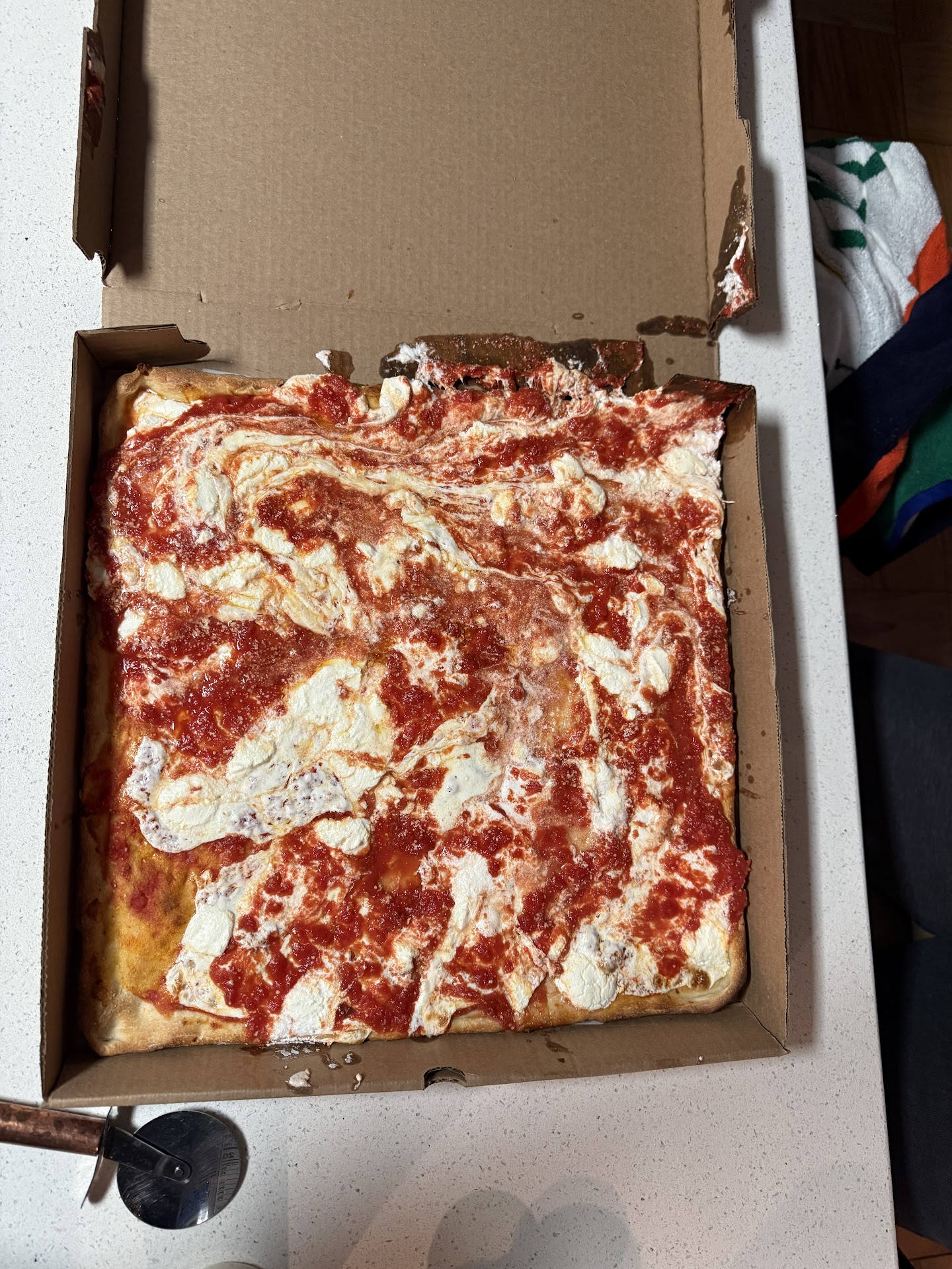 First of all, I have now been to about 10 pizza joints in the Upper East Side and no one can get a plain slice right, and most can't even get a fresh mozzarella slice right and/or add sugar.... That being said, the plain slices here are so skimpy you would need a full large pie to fill you up. Barely any cheese, barely any bread, and even less tomato sauce to the point that you barely can tell there is tomato sauce or this is pizza. The employees are incredibly rude and hostile. The guy taking orders is just yelling out "Next!" and everything is chaos. No one says hello or thank you at any point. The bigger issue is that Manhattan and Brooklyn in 2025 have zero good plain slice or pizzerias left. My guess is management in these places are trying to save money, just give us slices with cheese and bread but barely any tomato sauce. I am done with Pizza forever because I can't find a decent slice anywhere anymore. Amazing that this place exists, it looks beautiful inside with a few newer flatscreens but the pizza slices are such thin crust they may as well be the width of paper, the employees go out of their way to yell, are rushing and panicked and are...