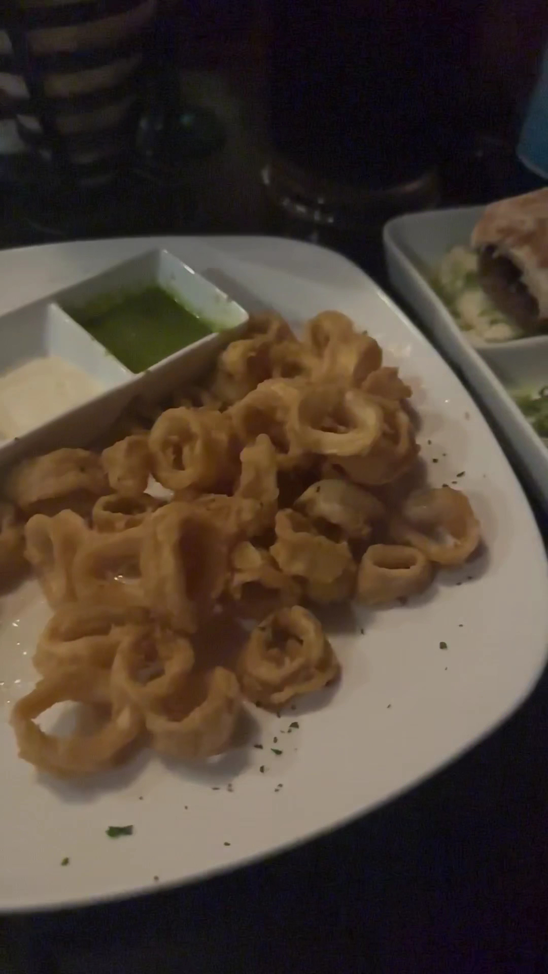 Albondigas espanolas: B+ Nice meatballs. About 1.5" in diameter with a nice red sauce. Perfect for my 3 year old daughter. They had great texture -- not too meaty, and not too fluffy: the chef found the perfect meat-breadcrumb ratio. A more garlicky, less sweet tomato sauce (or more garlicky meat) would've nabbed an 'A' rating rather than B+.
