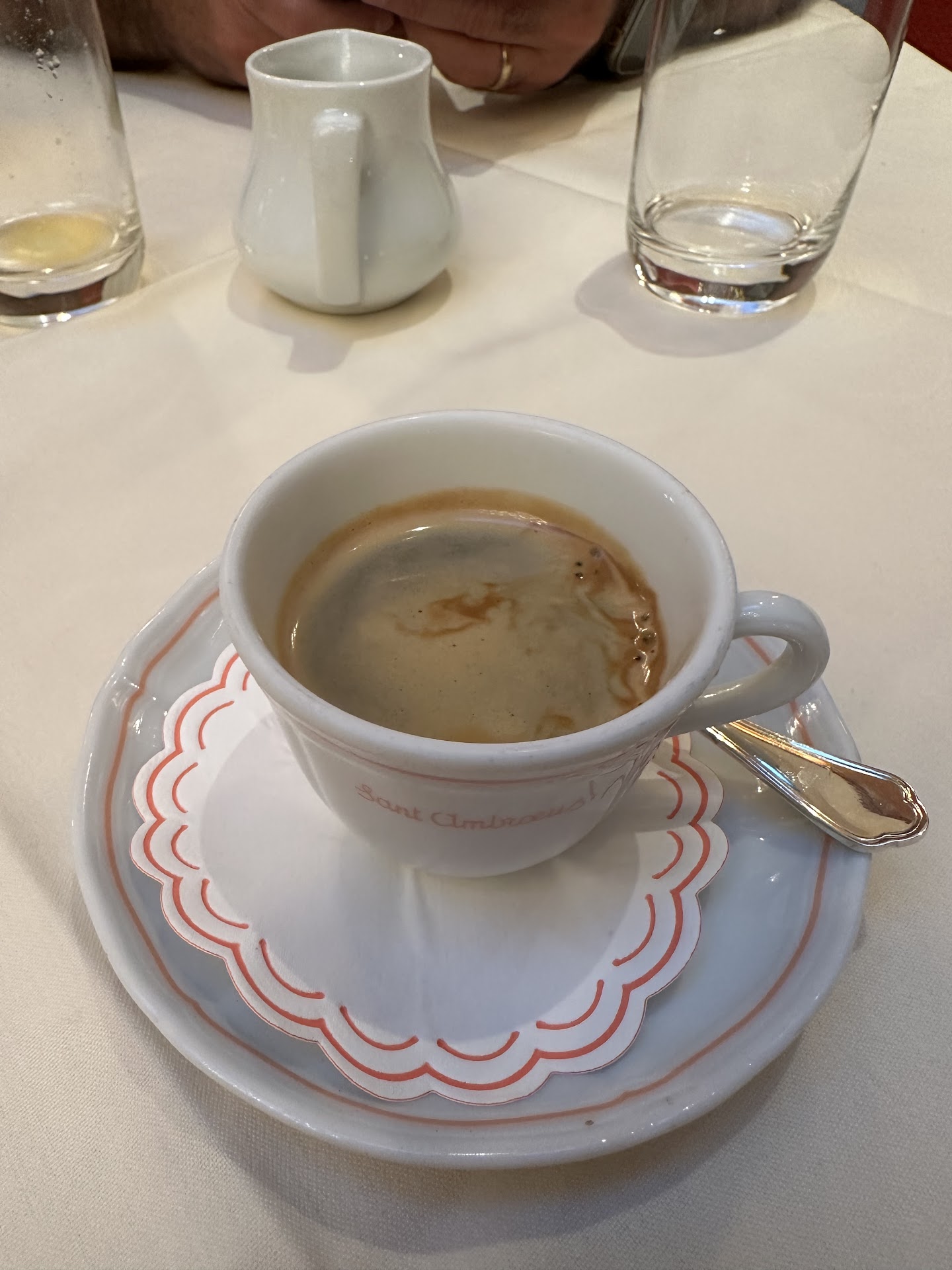 The restaurant overall is very elegant and charming. Our original server was attentive initially and she was very helpful with her recommendations since this was our first time at this restaurant(We were recommended the Avocado toast and the Sant Amboeus Egg Bendict which both ended up being great). Once our meals arrived, she basically vanished. I'm guessing the restaurant got more busy. After we finished our breakfast meals, we asked a second server if he would place a second round of drinks(black coffe and a glass of freshly squuezed orange juice).