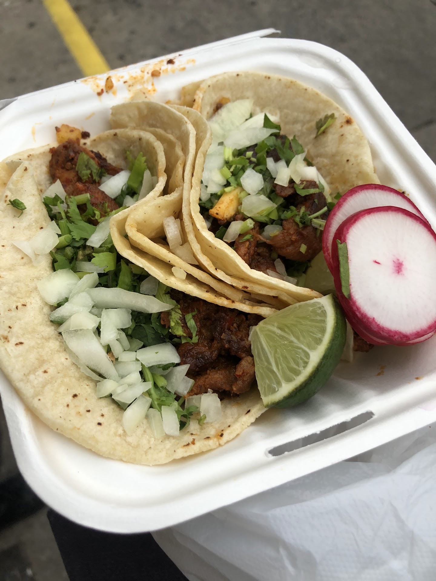 Read moreDecent tacos. Nothing too over the top. Good tacos in New York are as hard to find as good pizza in Florida. Something that upsets me is that people lack making the tortilla themselves . This is an essential part of the taco. The marinated meat was flavorful, but had too much salt. Fresh onions and cilantro are a must. The lines were a bit dry. For the price you’re paying, I would expect better tacos. They could do so much better especially since you can just go down the corner to any other Mexican...