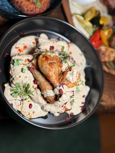 A great addition to the neighborhood with incredible vegan options. We started with the classic starter, the trio of three dips. It comes with a creamy walnut dip, a tomato/pepper dip, and an onion walnut dip. All tasty and served in portions so generous that we didn’t have enough bread to finish them. The homemade bread is fresh and good. Next, we had the assorted pkhali, which is two other walnut-based spreads (spinach and beet flavored) plus some walnut-stuffed peppers and eggplants, accompanied by the house cornbread. The spreads were all fresh and tasty and remarkably different from one another considering they were all walnut-based. (Every time we asked our waiter a question about a menu item, he started by asking whether we liked walnuts - lol!) The cornbread was very oily but good. We loved the lobio entree, Georgian bean stew accompanied by homemade pickled vegetables and more cornbread. For dessert, we had the pelamushi, a chilled grape jelly roughly the consistency of cranberry sauce, served with (you guessed it) walnuts. It was fun and unlike anything we’d ever had before. Overall we were thrilled to have so many plant-based options and look forward to trying different things next time such as the mushroom dishes...