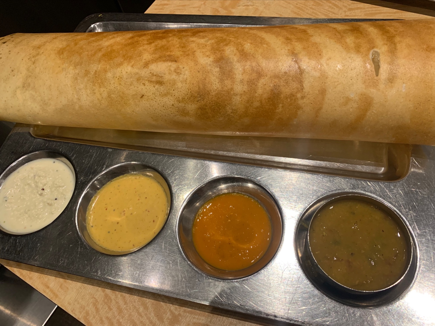 FOOD -Paper masala dosa (pictured below) has been my go-to. The bread is deliciously chewy towards the center with a nice crunch towards the edges. The dips keep the flavors interesting and have a mild spice here and there Garlic naan comes in 4 pieces and is deliciously garlicky and fresh. The bread was straight out of the oven and into the basket. Would recommend this staple if you’re craving and if you will have enough space for the dosa! Coffee is creamy and delightful! It really hit the spot at the end of the meal. It’s quite strong, so I wouldn’t advise if it’s late in the day and you are sensitive to caffeine