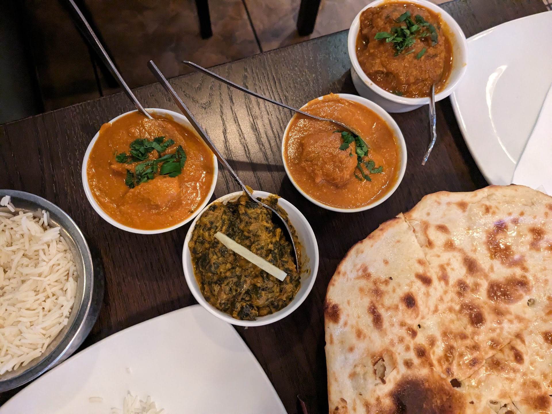The vegetable samosas and pakora were both delicious. As for the mains, we had Chana masala, which was great. We also had butter paneer which I had never had before but quite enjoyed. We had vegetable korma as well and while I thought the sauce was good, there was a decent bit of broccoli in it which I thought was kind of weird. We got garlic naan, paneer naan, and Dahl soup as sides all of which were enjoyed. They ended up comping dessert for all of us which was very nice. Sathi also serves beer and wine and we enjoyed a bottle of Prosecco with our meal.