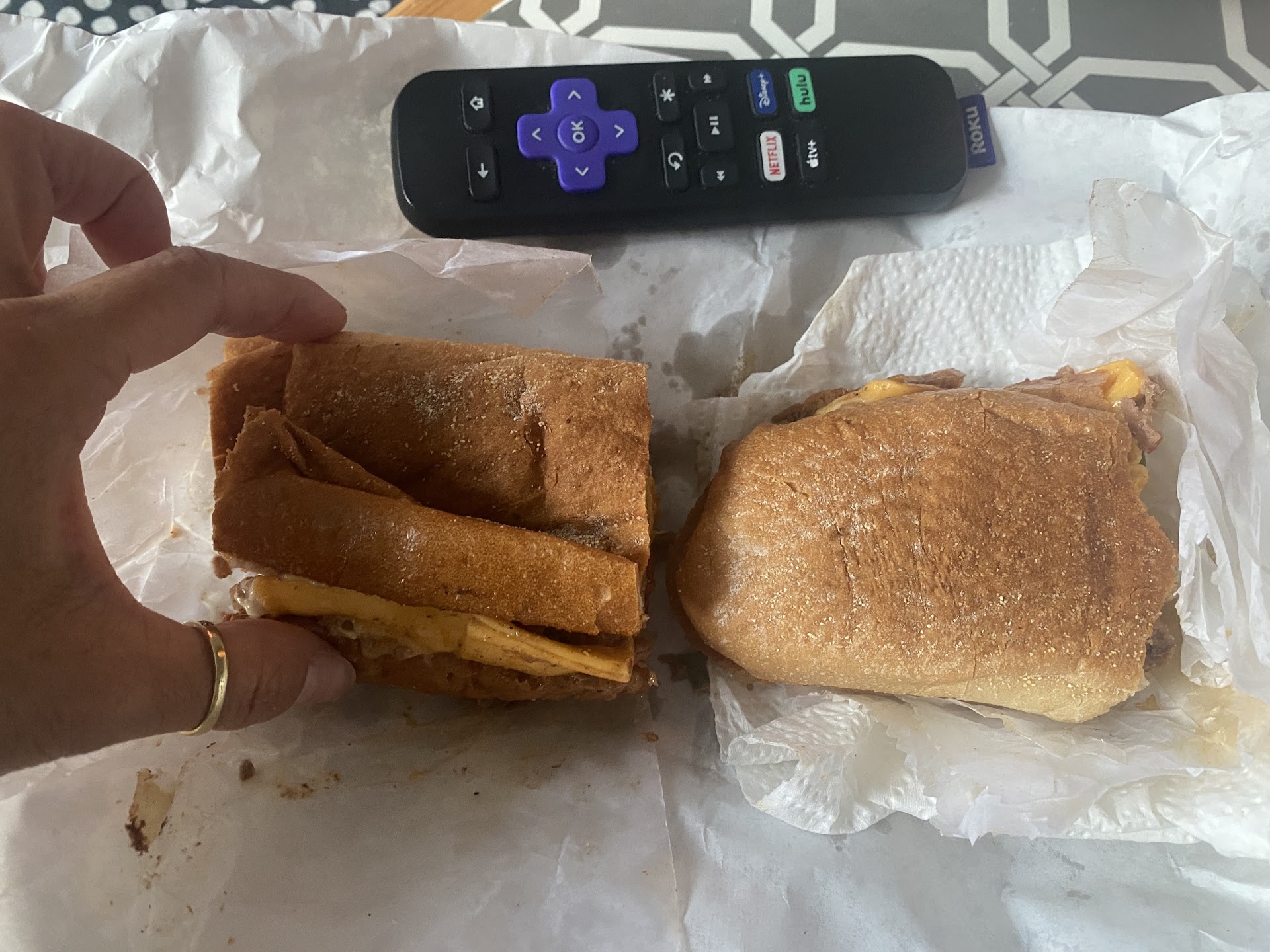 Just bought a Philly cheesesteak sandwich on a hero coz I was craving it. Never bought one from this place and I was on my way home from work so I thought why not… TERRIBLE IDEA. The meat was SO SALTY! And as you can see from my photos, the $8 sandwich is so small. It looks like they cut the bread more to make it smaller so they don’t have to put more meat. So basically one half of the sandwich is $4 and you can barely get 4 bites out of it.. and I’m a small person! If I wasn’t so tired from working a 12 hrs shift I would have walked back and made them taste the meat and make me a new sandwich or get my money back. I had to throw it out, it was REALLY THAT SALTY.. like the cook forgot to close the salt top and it spilled all...