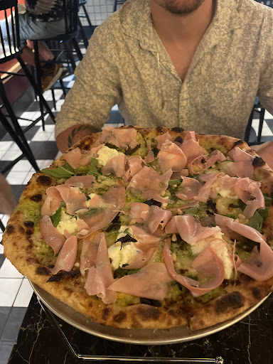 Read moreA friend of mine was in New York made us reservations to check out this place, and I'm so glad he did. Is at the 50th Street Subway stop. If you don't know where you're going, there's a good chance you'll miss it. Also found out that the same people who own this pizza place own a bakery and coffee shop right across this way as well as the bar next door, so a great little place to stop in New York for whatever you want. Want. This place was definitely crowded, and reservations would be strongly recommended. All the servers were super friendly, said hello, and they came over and took our drink order right away. There is so much to see on this menu. I'm so glad I was there with a group of people so that we could try multiple items. I highlighted in my pictures which items we got, but there were four antipasto items and two pizzas. The only thing I would probably not get again was the Caesar salad. The radicchio is not something I was a fan of, and I felt like there was too much of it in this salad. Everything else was absolutely spectacular. Spectacular. The Margarita pizza here is to die for. We really wanted to try the ice cream with olive oil for dessert, but the ice cream machine was broken. Super bummed, but gives me another reason to come back... As if the fantastic food service wasn't enough!!! If you're looking for a cool little restaurant to grab some super interesting food from while in New York, this...
