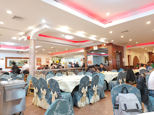 This place is okay for dim sum. I found the restaurant more visually appealing than the food. The restaurant looks old and worn out from the outside and staircase. However, inside was spacious, pretty, and modern looking. I was there around 12:30pm, which is towards the tail end of dim sum brunch. I didn't see much variety both in hot food and sweet pastries. I also didn’t see any vegetarian dishes! It could have been the time I was there. Next time I will go there earlier to be sure there is more variety. Waiters run around a lot, so you need to grab their attention for anything you need, like water and extra food off the menu. The waitors and managers are somewhat brusque as to be expected...