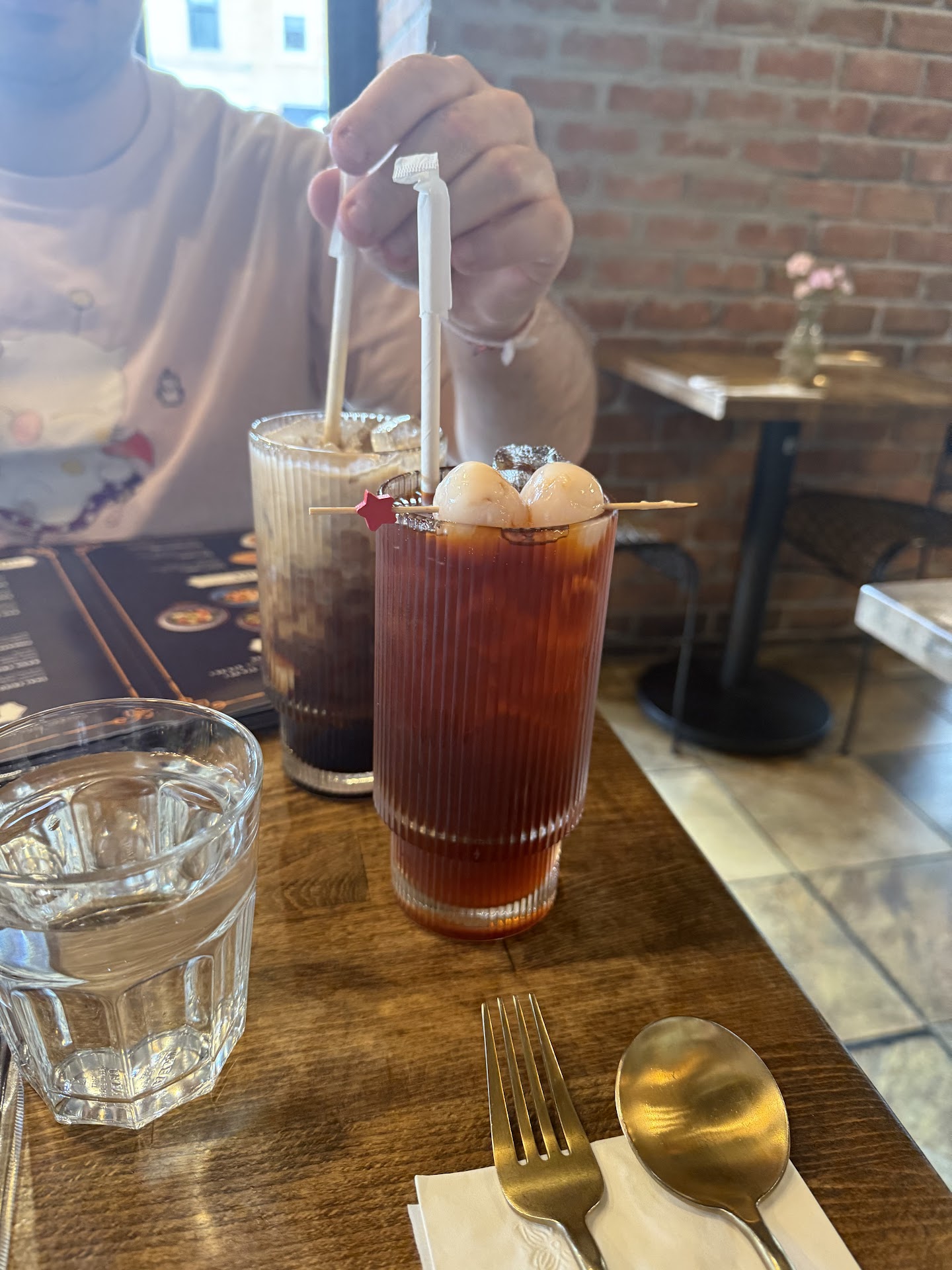 I tried the lychee Thai tea- very refreshing. It contains no milk like the original Thai.
