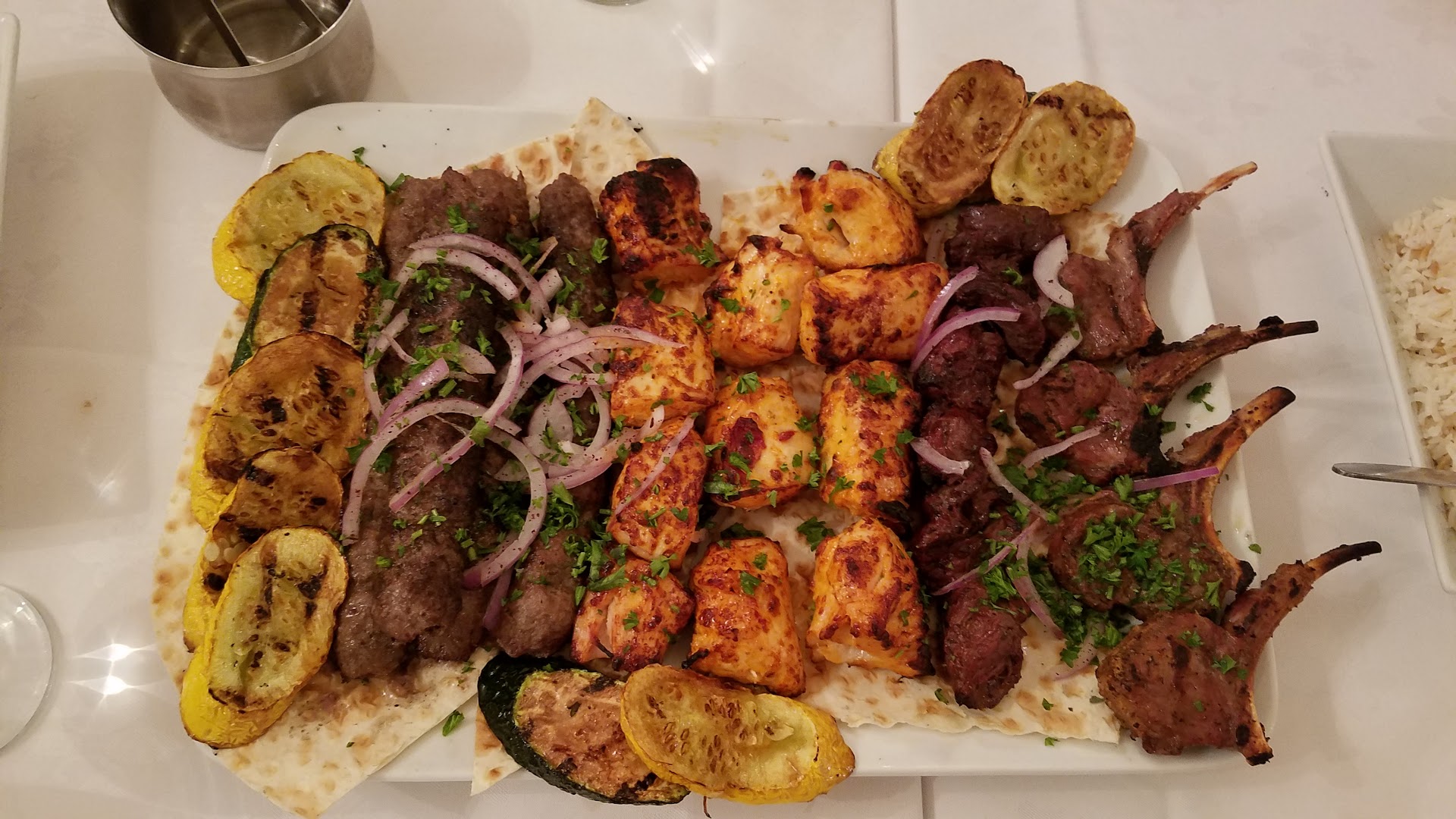 The kebabs are grilled an open flame. We had the chicken and the beef, which were both very good. My favorite where the baby lamb chops which were spectacular served with an open flame tableside.