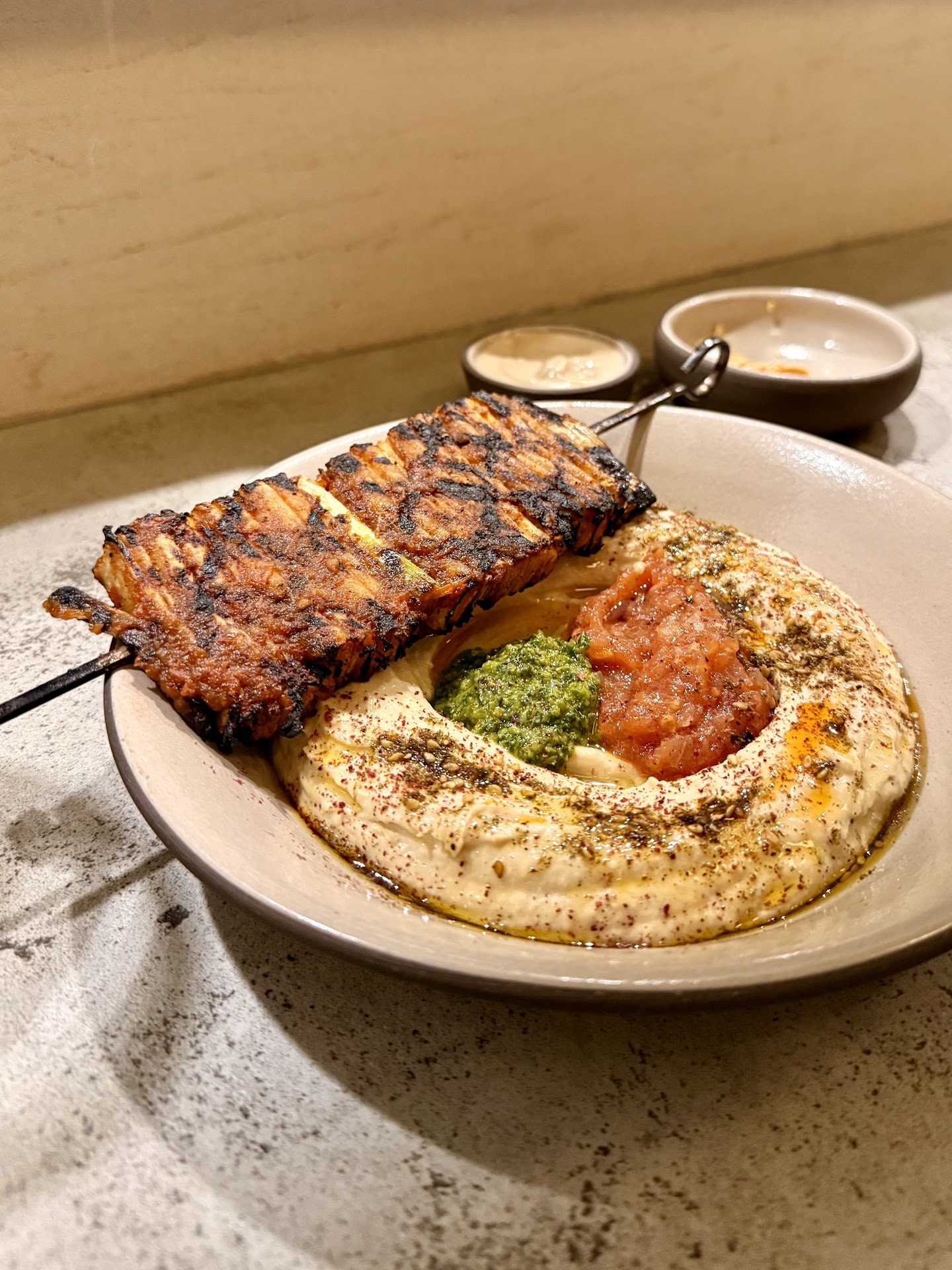 Next we got the iconic celeriac shawarma. SUPER fun dish that is not to be missed. Love that they use a glorious vegetable to stand in for meat rather than a processed meat substitute. It is delicious and comes atop a bowl of perfect hummus. Yum.