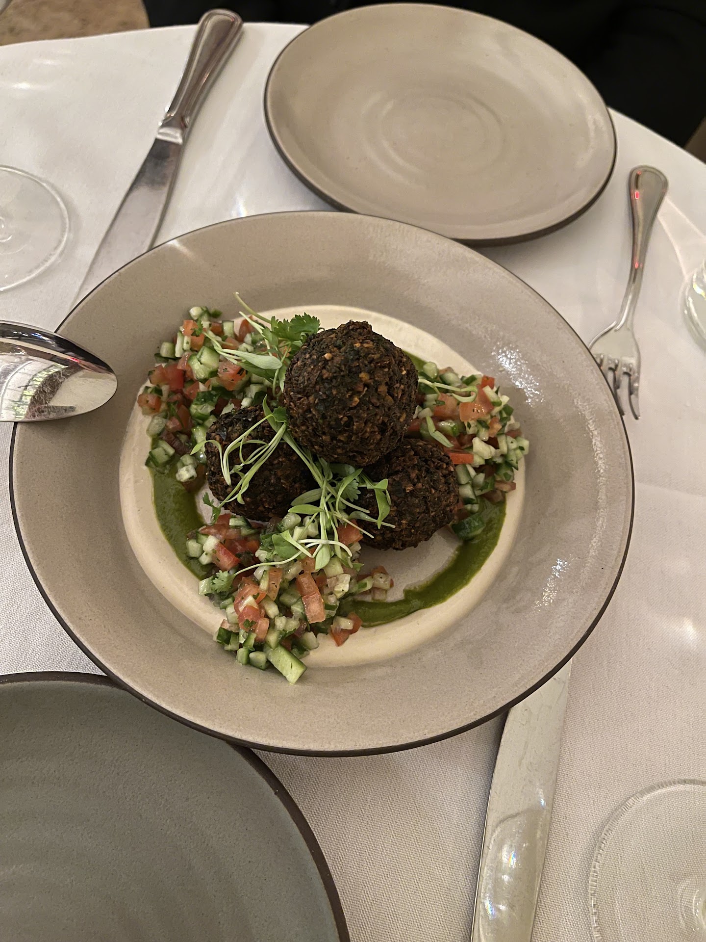 Shosh isn’t just another plant-based restaurant — it’s soulful, creative, and rooted in Israeli tradition, with a modern, elevated twist. You can tell every detail is intentional, from the plating to the pacing to the playlist. Sitting at the bar and watching the kitchen at work made it feel even more personal.