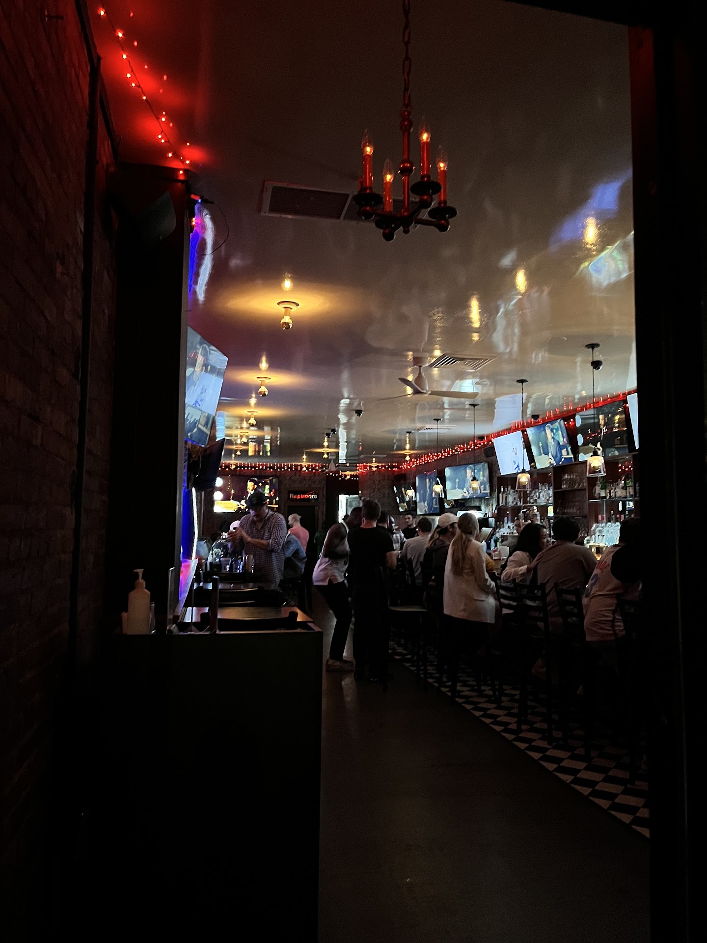 And then we happened upon Flight 151 by chance. Very fun place. Drinks were reasonably priced and there was a decent sized crowd without being uncomfortably packed. We liked the butcher paper with crayons, that provided lots of bar table amusement for a Friday evening. I really liked the flight attendant like track playing in the bathroom -- very appropriately in theme.