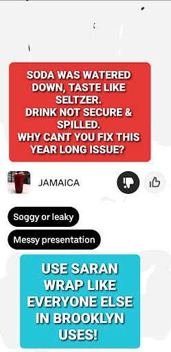 EXAMPLE #2) FOR 2 YEARS I HAVE BEEN HAVING ALMOST EVERY CUP OF HOT COFFEE LEAK BADLY INTO THE SAME BAG WITH MY FOOD THAT GOT RUINED MANY TIMES. (UBER EATS IGNORES THIS ISSUE)