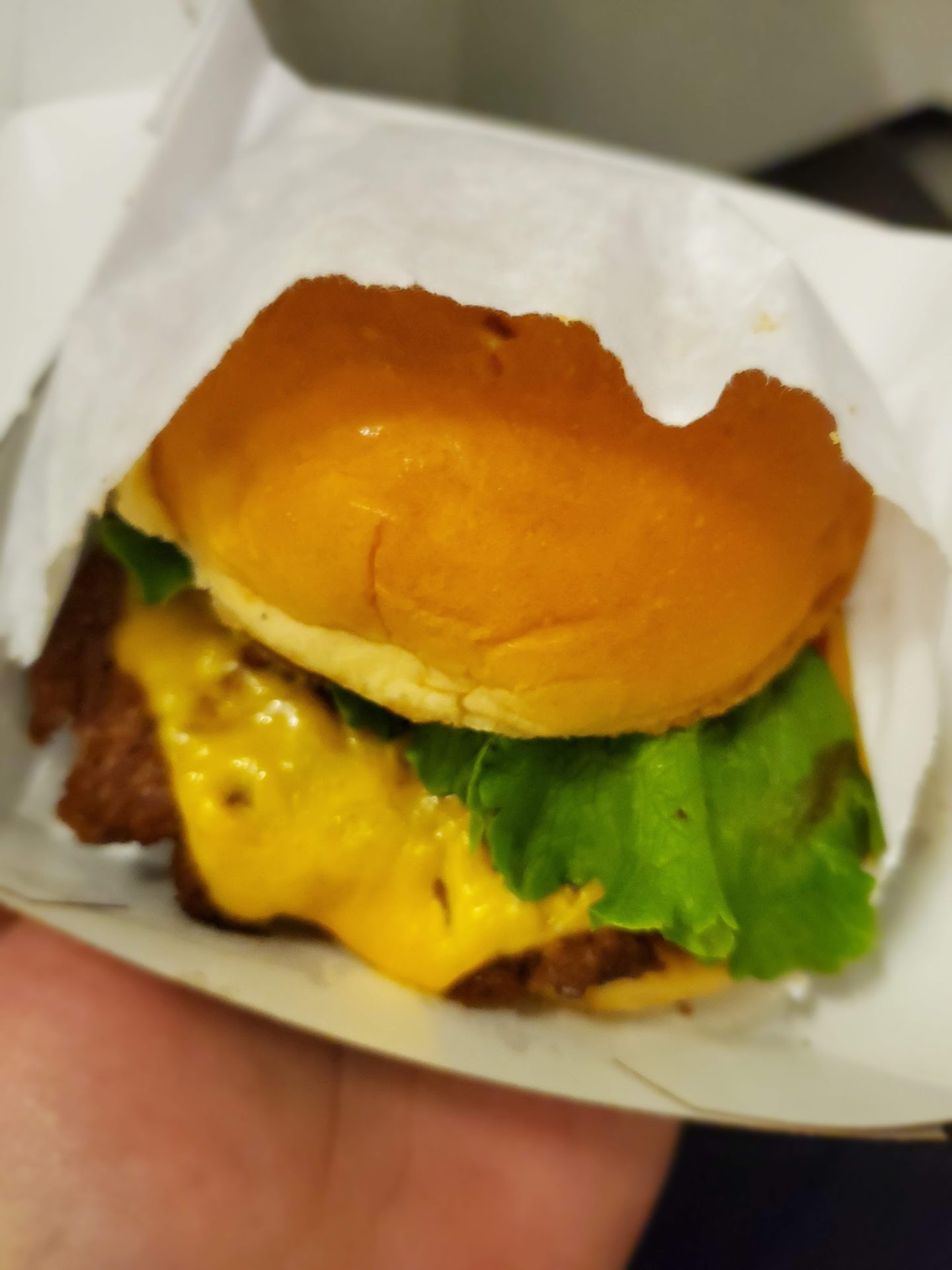 Read moreShake shack took over America like a wave of inappropriate tweets from an orange-would-be-dumb-as-a-doorknob presidential wannabe. Thankfully, the results are more digestible. The burger here has moved away from the two-hander, American standard, to a Bao-like configuration, complete with steamed bao bun. It's all pretty palatable, without any discernible qualities. The tomato wilts under the pressure of its preparation, transportation, handling and proximity to the impressively hot, cooked medium, otherwise bland meat. The sauce adds nothing but moisture. The lettuce I suspect has gone through more natural selection than the domesticated cow it blankets in a reassuring green. That's its sole purpose. It's a plus that this looks like the photo, complete with hi-viz vest "cheddar". Tossing up between chocolate or vanilla thick shake, the very impressive counter woman assures me that she hasn't tried the chocolate, but "the vanilla is bangin' ". Bangin' my pancreas for sure. It's creamy and at the right temperature to confuse the supplied straw, with a sugar level just a scintilla short of diabetes-inducing (though the world does seem to move at a confusingly slow pace for a while thereafter). These two incursions into pop culture fressing left me about $14 less wealthy, but 1000 calories closer to my...