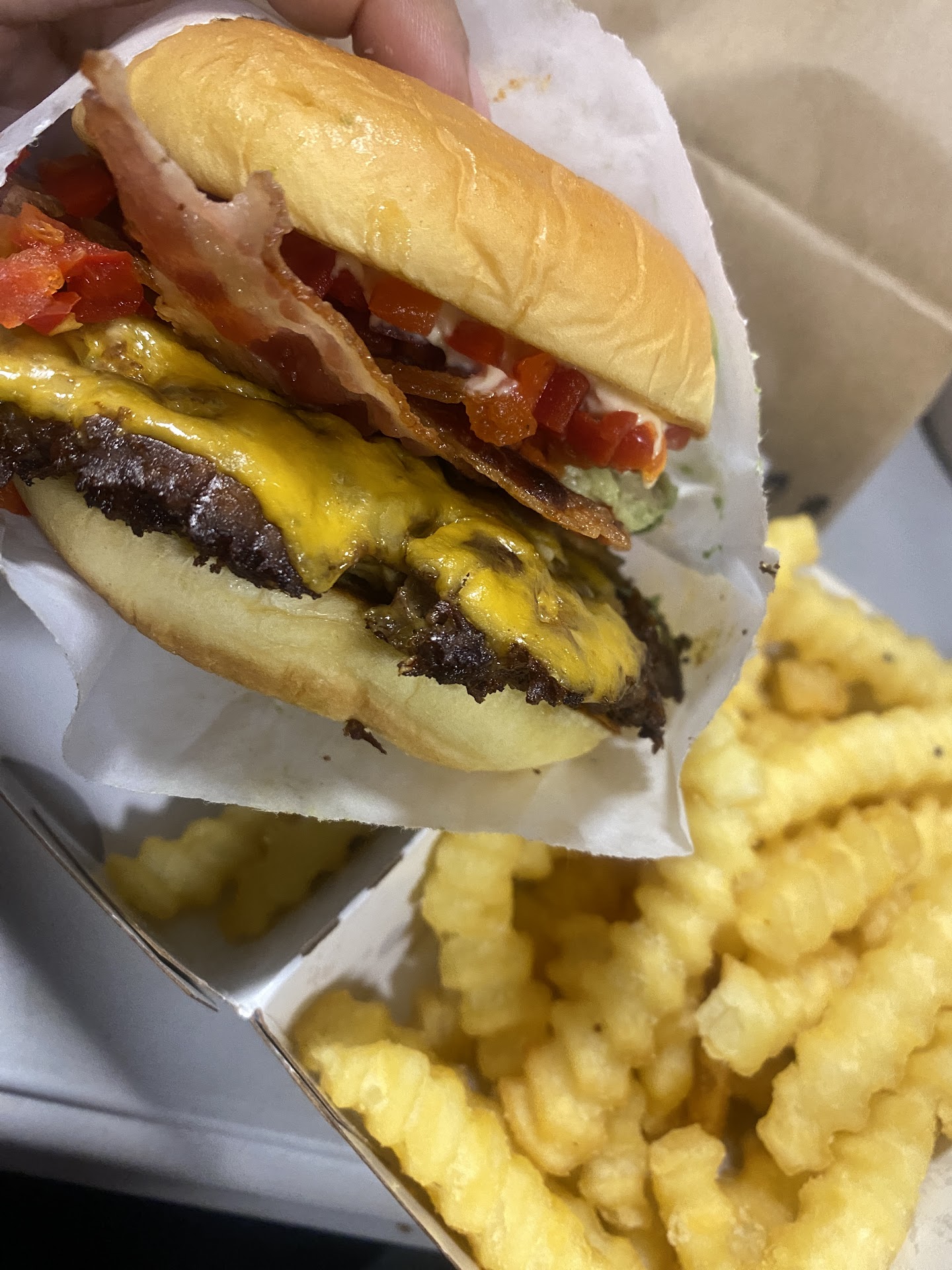 Read moreBeware and eat at your own risk but I do not recommend. This is a warning because I would know, I got food poisoning from a Smoke Shack burger I ordered from this location on October 5th, 2023 at 8:36pm - verified by my bank. I am still traumatized and bothered by the pain and suffering I’ve endured and experienced days following the consumption of the food sold to me. They are serving undercooked, raw bacon which is extremely dangerous, unhealthy and can land you in the hospital with one of the most notorious illnesses and parasitic infections called trichinellosis. Shake Shack do better, this is not a joking matter and needs to be taken serious and rectified immediately because y’all are playing with people lives which is completely unacceptable and just...