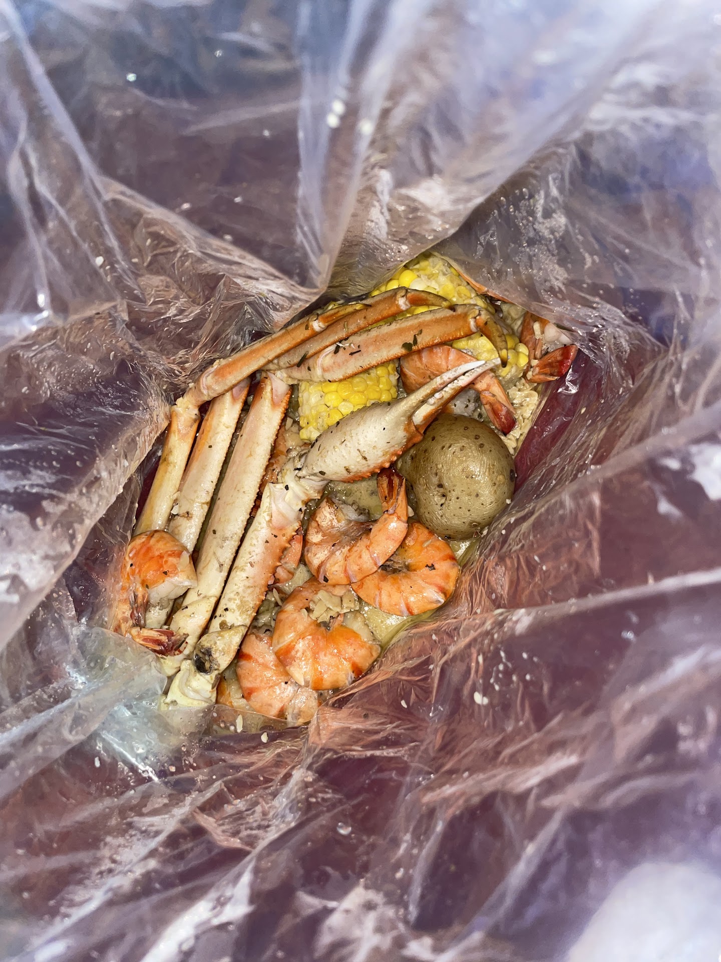 Royal Catch Seafood Boil: None of the shrimp were deveined (which means youāll be eating shrimp excrement) and they all had a very odd, mushy texture that makes me question whether the shrimp was fresh or not. There were 4 snow crab legs that were the only good tasting part of the overall mealādecent size, cooked well. There was only 1 king crab leg and it was overcooked. The potatoes were plain and the corn tasted fine with the sauce. The shaking sauce, medium heat, was a better part of the meal with a good garlic taste to mix with the cajun seasoning but nothing to write home about. For a $64 boil, Iād expect more than just mushy, unclean shrimp with measly portions of the āexpensiveā crab.
