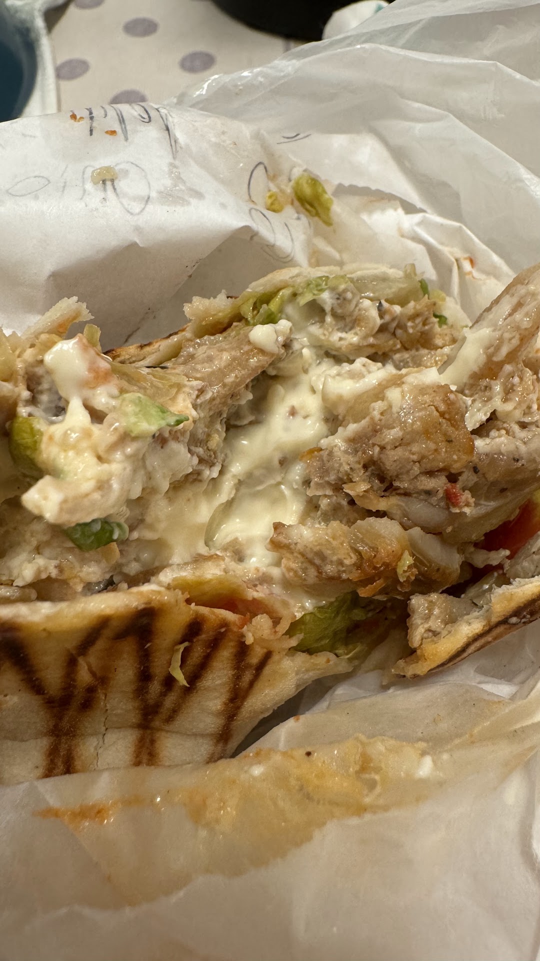 Read moreMy friends tagged this place on Instagram, and I wanted to try it too. When we received the shawarma order, it was huge, and I was very hungry. I thought, "Now I'll enjoy a tasty shawarma ." Unfortunately, the shawarma wasn't delicious. I'm not usually picky about food, but there was so much mayonnaise that it became unpleasant. The usually shawarma itself is very caloric, on top of that, there was so much mayonnaise.I thought it was just a lot of mayo at the beginning, but the entire shawarma was soaked in it. The chicken was very salty. Maybe I was just unlucky. Now imagine a large amount of salty meat, lots of mayonnaise, and a few vegetables. It lacked freshness and some additional sauce other...
