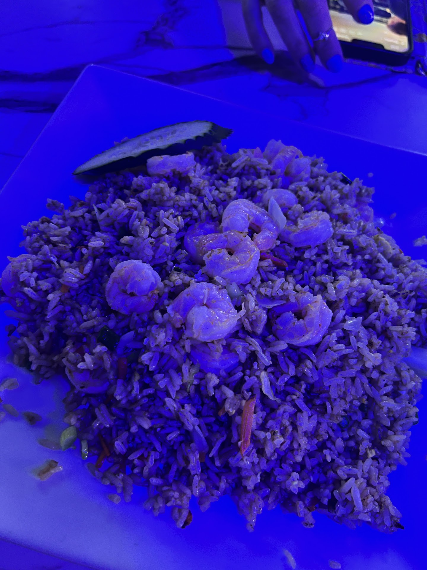 The food: It was good. It hit each aspect that makes a Guyanese-Chinese Fried Rice distinctive. Not too salty, very flavorful from the famous āBrown Sauceā, the rice was not too soft nor too hard and had a great ābiteā to it, and they did not skimp on the shrimp! There was little to no vegetables in the fried rice, and was topped with a slice of soggy cucumber that was bitter and probably frozen then thawed.