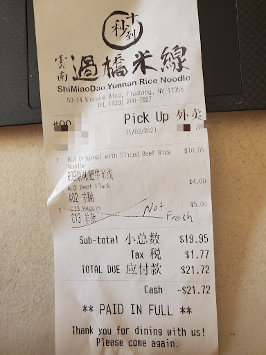Ā Ā Ā Read moreSome ingredients not fresh.This is probably 4th time I bought something to go here. I ordered slice beef rice noodles soup, ordered extra Haggies since i was hungry. But I think the huggies is not really fresh when I open it. I still put in the soup and eat the whole thing. But later that night my stomach feel funny. Then two hour later, I through up. Now I can definitely know the addon part is not fresh at all.