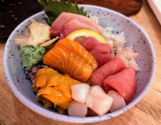 Food review: sushi was great. The one hot rice bowl and three chirashi bowls were mainly rice and 2 pieces of meat. I showed the waitress a photo of the one of the chirashi bowl from a reviewer 3 months ago and how my bowl looks nothing like the bowl given to me and her response was, “That’s how we make it now.”