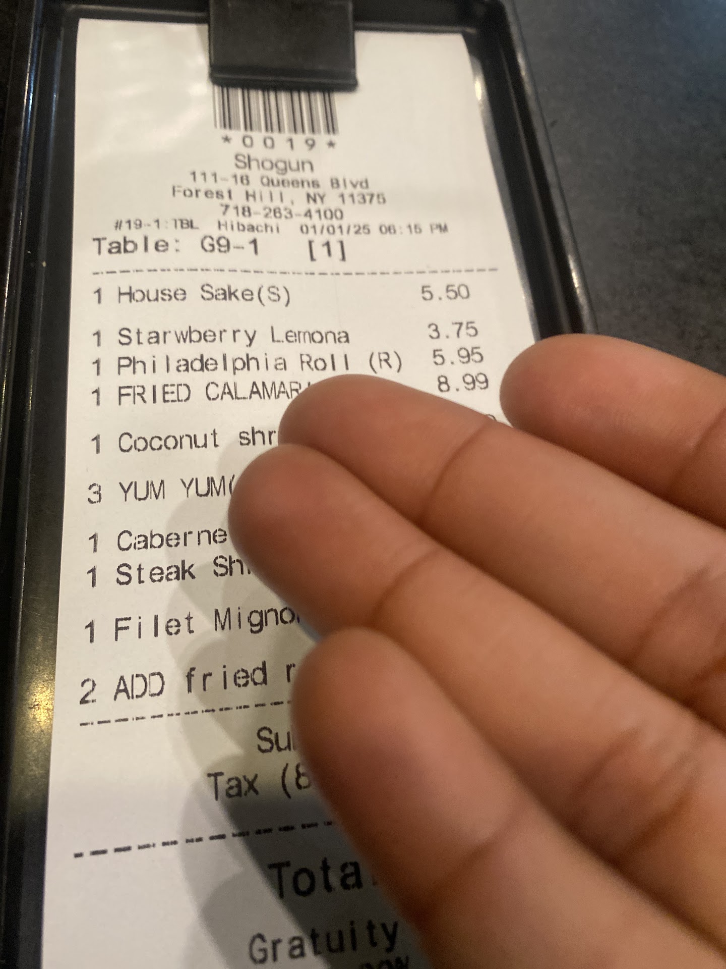 We completed the receipt with tip, left it on the table (like most restaurants) and went to walk towards restroom when I was greeted by the guy that sat us at the beginning (I am assuming he is a manager/owner) DEMANDING the receipt.