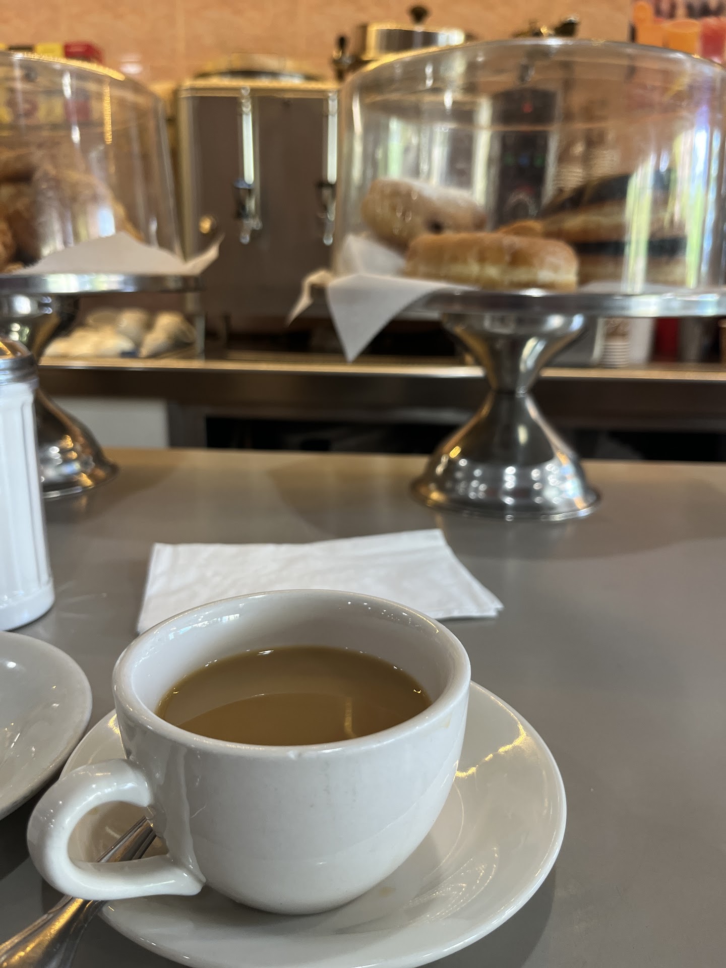 Today (Friday May 17th) I walked in at 9:10am, and sat at a table of my choice. There were only three other tables occupied. A male Spanish (with a nice black beard) waiter brings me a menu and I proceed to ask for coffee. In the same sentence I indicated that I like to have 2-3 cups of coffee before ordering. I waited 9 minutes, before I got his attention (he was actually standing 19 feet from me having a conversation with someone sitting at the counter) for a second cup. When I was finally ready for a third cup I see him conversing by the front of the kitchen area, so I waited. I decided to catch up on 25 emails on my phone and he still had not come by to ask if I were ready to order or if I would like more coffee. I finally got tired of waiting and decided to once again, pay for my coffee and walked out without eating. Let me add, the diner was empty at the time and he took care of a couple sitting right behind me. Extremely disappointed. I eat here often and spoke so highly to my friends and family about this place, only to now reconsider no longer...