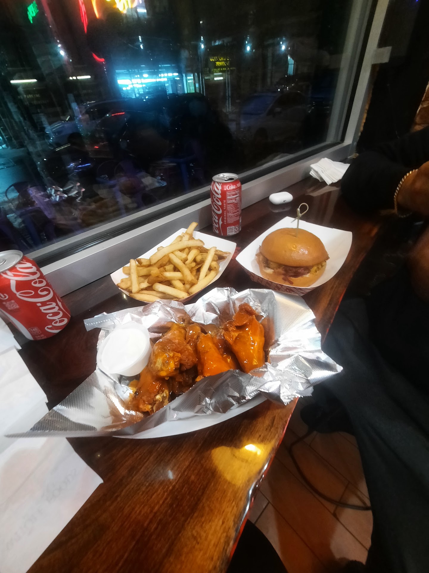 From the moment we walked in, we were greeted by Rich and Victoria, and I cannot express enough how incredible their service was. Rich was not only friendly and welcoming, but he was also extremely helpful and efficient. I let him know we were first-time customers and short on time—he immediately got our order started without delay. As I scanned the menu and felt a bit indecisive, Rich recommended the wings—and I have to say, it was a perfect suggestion. He even took the time to ask whether I preferred drums or flats, a small detail that really stood out. At most places, this kind of request might be met with annoyance—but Rich’s patience, kindness, and attention to customer preference were off the charts. His level of customer service truly deserves recognition.