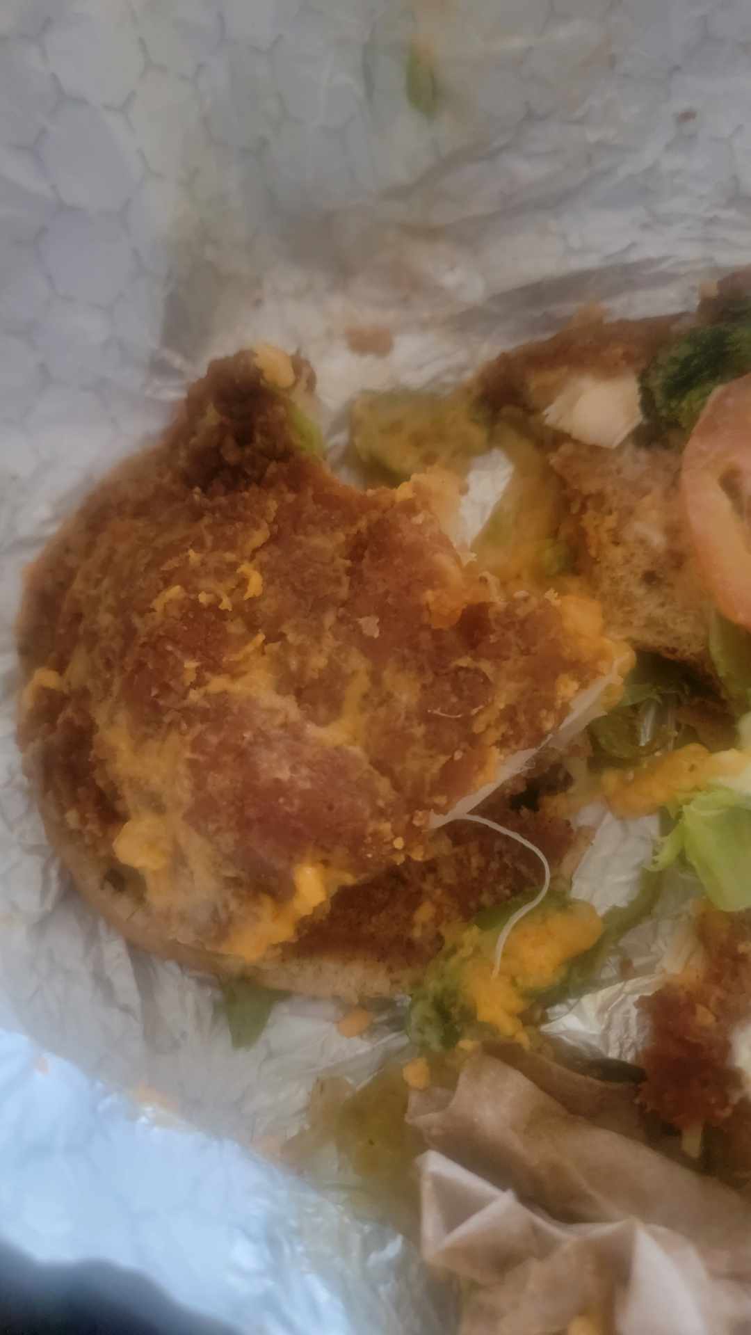 I normally enjoy Smashburger, however this experience was not impressive in the least. I ordered a Colorado chicken sandwich, a bacon cheeseburger with cheddar cheese, and tater tots ( my favorite.) When I arrived home I bit into my Colorado chicken sandwich and was met with a surprise gritty taste 🤮! I took one more bite to make sure I wasn't crazy and to my dismay it what's still disgusting. I attempted to wipe off the substance that was supposed to be "cheddar cheese." I was unsuccessful as it was meshed into the chicken. (Please see images)