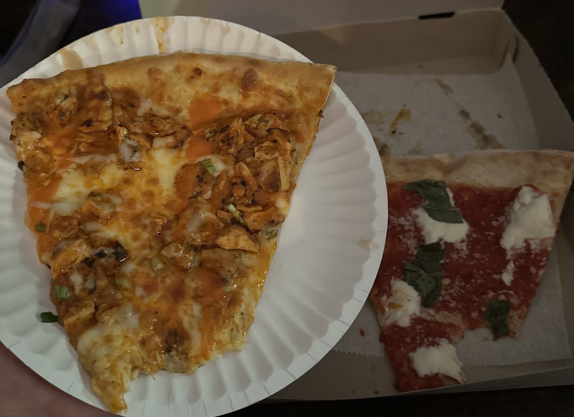 I’ve been twice. First time was a Sunday around 1230pm and the slices were fresh, decent amount of people there. (UPDATE: NOW CLOSED ON SUNDAYS). Second time was 2pm on a Tuesday and the slices were just as fresh. Buffalo chicken is my favorite (crown jewel) . I’ve also gotten the marg slice with burrata which is delicious. Garlic knots come in orders of 3 for $2. They’re not small and come with a marinara to dip, so I plan to get an order each time I go. Buff chicken, marg slice with burrata (pic attached) and garlic knots with marinara to dip - $13 Delicious, not too thin but not overly fluffy crust/dough. Might be time for me to try something other than the pizza, but the pizza won’t disappoint.