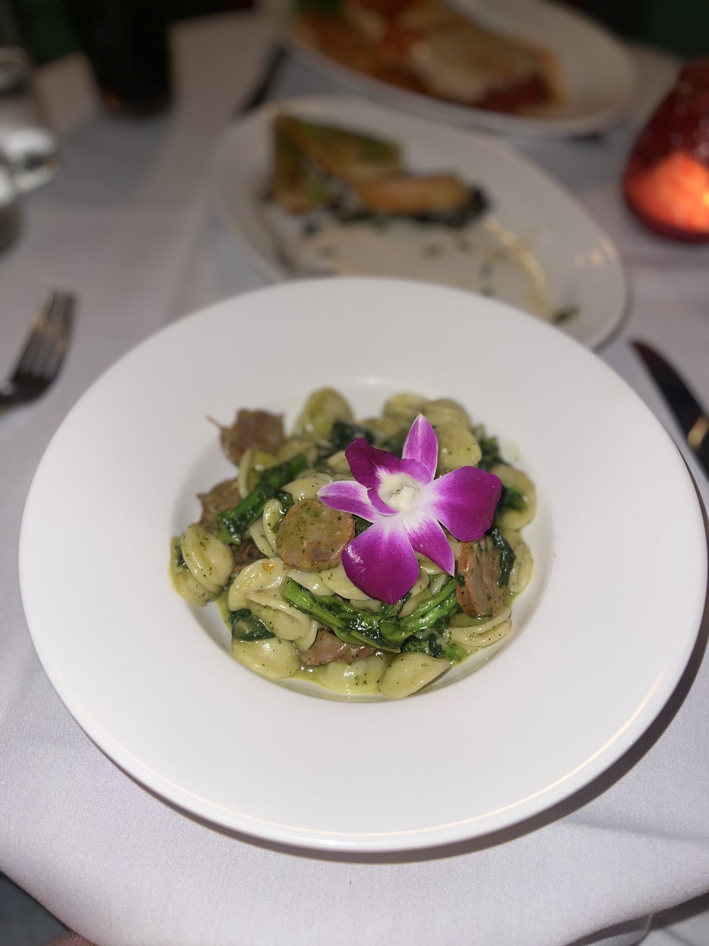 Oricheita Al barese (I BELIEVE! Lol) $22 Nick said this dish was absolutely amazing. The flavors were so delicious. The sauce was sort /tasted like of like a thinner version of whatever paste was on the garlic bread. And the sausage was absolutely amazing