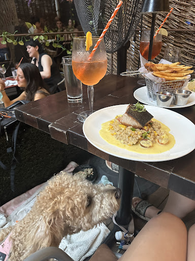 Read moreAmbiance (5/5): This restaurant is absolutely beautiful interior and exterior. I love eating here because it feels fancy, welcoming, and cozy all at the same time! I especially like how dog friendly this place is. This is why I brought my dog to dine in their outside patio. There's a front patio with several dining spots and the outdoor patio has covered dining in little mini private booths and tables about the backyard, multi-level spaces. There's string lights, fake greenery. It feels like you're someplace not in the middle of the city. I love love loved this spot. Service (5/5): They brought a Bark-cuterie for my dog and provided constant refills for her too! We were helped throughout the dining experience and waitress was super sweet when I asked her what the cola spritz was. When asked what the M&M shot was, she also kindly got me one even though I didn't order from the menu when my friend did! It was super sweet! Food (5/5): We came for their Thursday specials $10 aerprols: THERSy day for a girl dinner of coke aerprol, Caesar salad, and M&M shot. I decided to go for their summer special of a salmon on a bed of quinoa 'risotto' corn. The presentation was beautiful! The salmon had a nice sear and was cooked to a medium-rare which made the fish very tender. Can't wait to...