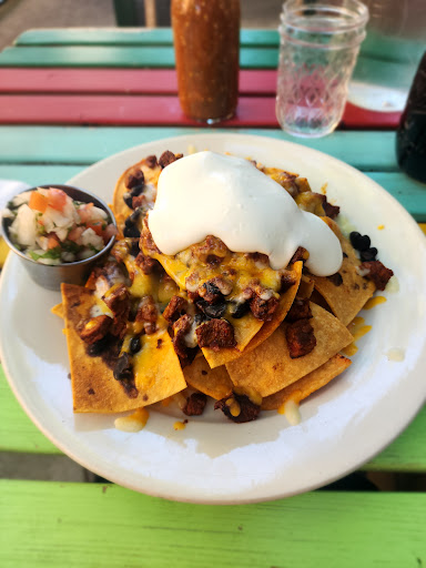 It was a truly dreadful experience. I’ll break it down. Great atmosphere is about the only good thing I can say. We ordered our drinks. They did come out in a reasonably timely fashion. I got Los Horcones. It’s a mezcal drink. I love mezcal. The drink was terrible. There was an acceptable amount of mezcal in the drink, but it tasted like there was only water and lemon added to it. It’s supposed to include grilled pineapple. Not only did I not taste that, it was garnished with a lemon. I might have just had lemon water. 🤷🏿♀️ My husband also had a mezcal drink, El Hakal. It tasted like mezcal with Minute Maid. For $13? I was not impressed. For food, we ordered nachos and 2 tacos each. It al came out at the same time, so there we were struggling to fit the food on the table and eat it. That was annoying. The tacos would’ve been very well priced had they not been such a displeasure to consume. We both ordered 1 al pastor taco. It’s supposed to be pork and pineapple. These tacos only had little specs of pork with a filler. It didn’t even have any pineapple in it. It tasted and felt like a potato mash with meat. This is a common practice in Mexico to help spread out the meat ingredients of a taco with a potato mash, but they at least have the decency to label it as such and only charge like 15 pesos for it! My husband ordered a chicken taco for huts second taco. I ordered a steak taco. Both were flavorless. The corn tortilla was on point though. I got the crunchy ones. The $13 chicken nachos were a , 6-inch platter that hardly had any chicken. Between the 2 of us, we each got 2 small pieces of chicken, and that was only because I checked before eating the piece I was about to eat to see if he got any. I was about to have 3 pieces of chicken. Also, my order of tacos came out wrong. If the tacos had been good, I would’ve just eaten the second one, but they were both the Al Pastor, and, like I said, those were trash. I can’t say how disappointing this experience was. We spent $55.53 for straight trash. They could at least charge reasonable prices. WHERE DO YOU THINK YOU ARE? I know what it’s becoming, but y’all ain’t there yet, dammit! Not with potato mash filler tacos, you’re not. My husband and I wanted to try something new. We regret taking the chance. Should’ve gone to Xochitl. At least they seem to know the worth of...