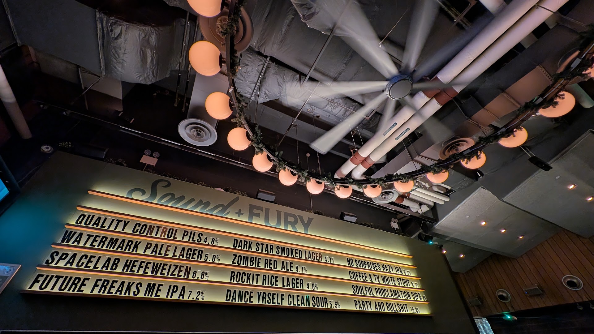 Read moreI've been to hundreds of different breweries and this one takes the cake! The chicken sandwich was by far the best chicken sandwich I have ever had in the history of my being alive. So far everything I have tried at this location has been a 15 out of 10. Beers are the best I've ever tasted starting with the Coffee & TV White Stout. This was the best coffee stout I've ever had from beginning to end the flavor kept on delivering. The Dark Star was the best most amazing smokey tasting dark lager with endless flavor and rounding out the night with Party and Bullshit NY Concord Barleywine. The Barleywine was the perfect night cap at an astounding 15.6% it definitely capped this amazing experience! Thank you for an amazing night Sound+Fury! I almost forgot the pretzel. This pretzel was the softest most delicious pretzel I've ever had. The dipping sauce was incredibly delicious and the spicy mustard tasted like it was just made. This place deserves more than five stars. I hope you have a chance to experience what I just...