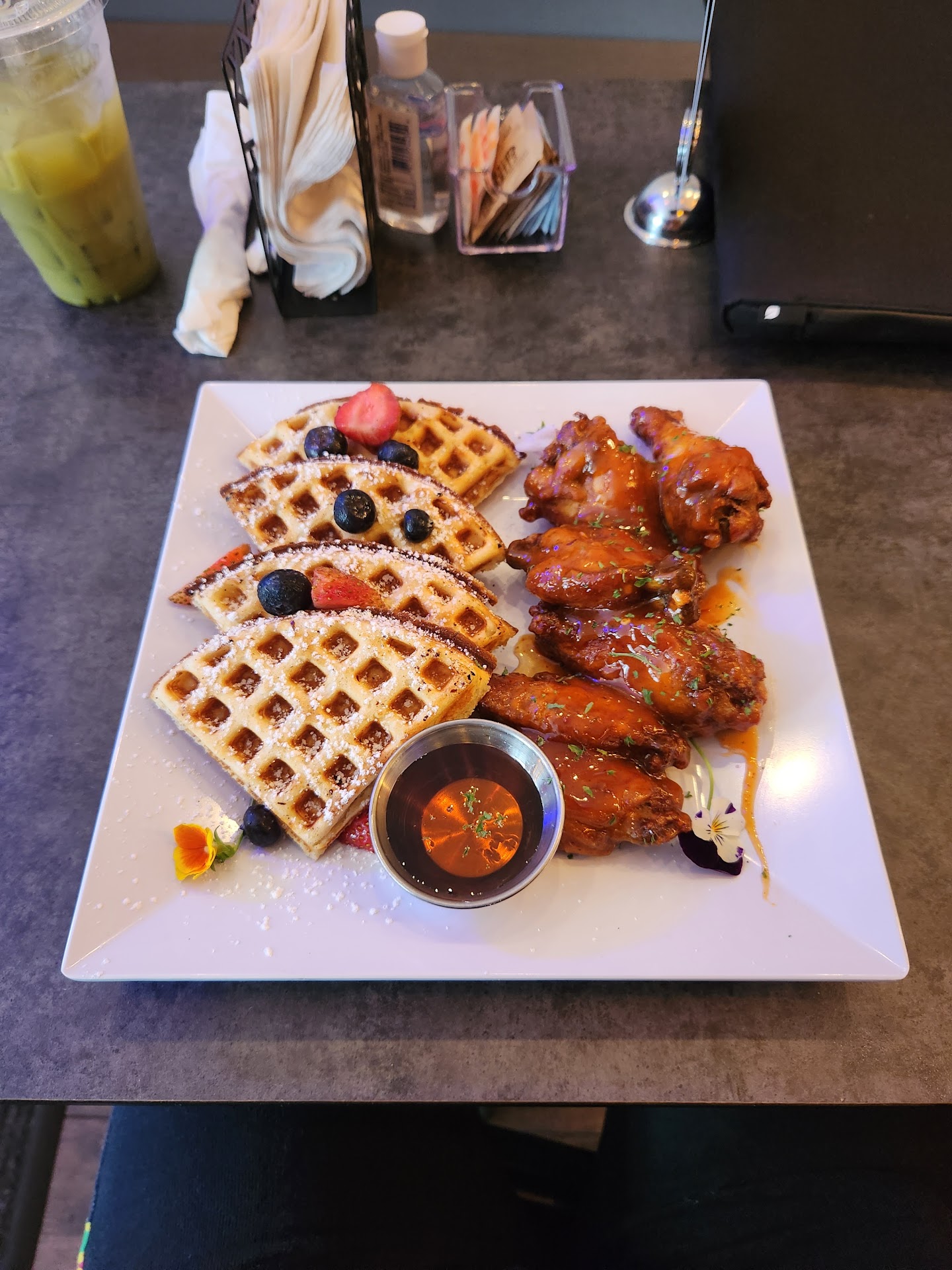 Read moreI ordered a large iced matcha latte and chicken and waffles. The mango habanero sauce was delicious - not too sweet, not too spicy - and the waffles were amazing as well. All of the food tasted fresh. The presentation was very appealing with pretty little flowers. I couldn't even finish my food - the portion size was really good - and I'm pregnant, I can finish almost any plate and have room for more. The matcha latte was great and affordable compared to other small cafés and Starbucks. I had their Haitian conch patty months ago which was delicious as well. I will be going back as often as my...