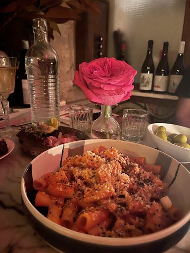 First and foremost this is a wine bar focusing on natural Italian wines. The restaurant is beautiful and has a cozy, intimate vibe - so, definitely a great spot to bring a date. They have a vast selection - obvious when we walked in because we were surrounded by literal walls of wines.