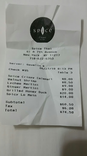 My husband and I cam here for a mid week date night last night and was very disappointed. Usually Spice does not disappoint but the ones in Brooklyn however seem to be a different story. Starting of with what I actually liked, the neighbourhood (park slope) how could that be wrong, the size and ambiance of the place was a plus. The fact that it's not too small and the lighting (candles on the table ) and the music playing softly made it a good start. When it came time to ordering drinks and apps is when it started to do down hill. The drinks: my hubby and I wanted the mandarin roy, which we always get at all Spice locations except this one. We were told that they never heard of it and when I proceeded to show them on the website they said that they have a limited bar and they can't make it. Now this should of been my sign for us to take date night somewhere else but trying now to be fussy (as I usually am) I said okay and ordered a lychee martini for myself and a ginger one for the hubby. My martini tasted like cold water with one lychee in it (sign number 2) but okay we're trying to have a good night out so I suck it up and said nothing. We then ordered the walnut shrimp and the calimari, the shrimp was ok not really seasoned but the calimari batter was over fried and there was more bits of fried batter than actual squid. Stil smiling for the hubby and being polite we proceed to order our entrées. My hubby had the honey duck and I had the spicy lo mein, now lets talk about this SPICY lo mein. I ordered it extra extra spicy, I am an island woman and I like it HOT HOT HOT. Somehow that translated to SUPER SWEET in the kitchen, what was bought to me looked and tasted like a quick cook ground pork with bits of broken spaghetti. I proceed to ask if they had any ground chilies or Korean red pepper flake or paste....... I was told to wait while they checked. After a while the waiter/ hostess returned with some chili paste which looked like sambal olek and some black pepper in a shaker which looks like it has not seen the ligh of day since the 90's. So I picked at my plate and made small talk with my hubby and when he asked about my food I said that I was full ( but he knows me well) . So the bill comes and we pay, the waiter/ hostess who is wearing shorts and a t-shirt stands over me while I sign the table (with my finger) and ask me about a tip (really) Now usually I tip well so seeing that I did not have and enjoyable experiance or anything nice to say I di not give a tip. He then proceeded to say "You didn't tip, you didn't tip" so I replied I know, he then said "You tip in cash" to which I replied no. He says "You don't like our food, we work for tips, what didn't you like?" I replied everything he catches and attitude and starts speaking in hia native language to the staff in the back from the front of the place. I did not care, Spice you have to do better at your Brooklyn locations.