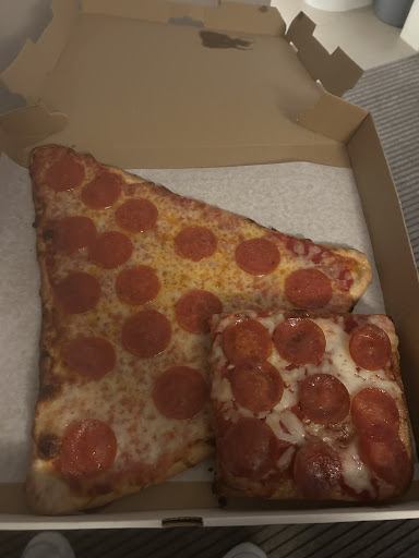 I went here late on a Friday night. I can’t have dairy and there no pizza slices in the window that were dairy-free or vegan, BUT, the person working there was nice enough to offer to make a square slice for me without cheese. I could have had any topping choice, but chose ham and pineapple because I wasn’t prepared for them to be so accommodating. The pizza was delicious, the crust was thin and crispy, and the sauce was slightly sweet (I don’t like tart super tomato-y sauce, so this was perfect), and they weren’t skimpy on the toppings either! Super accommodating place and friendly server. There are a couple of seats inside and a bar to eat on while standing, we took it...