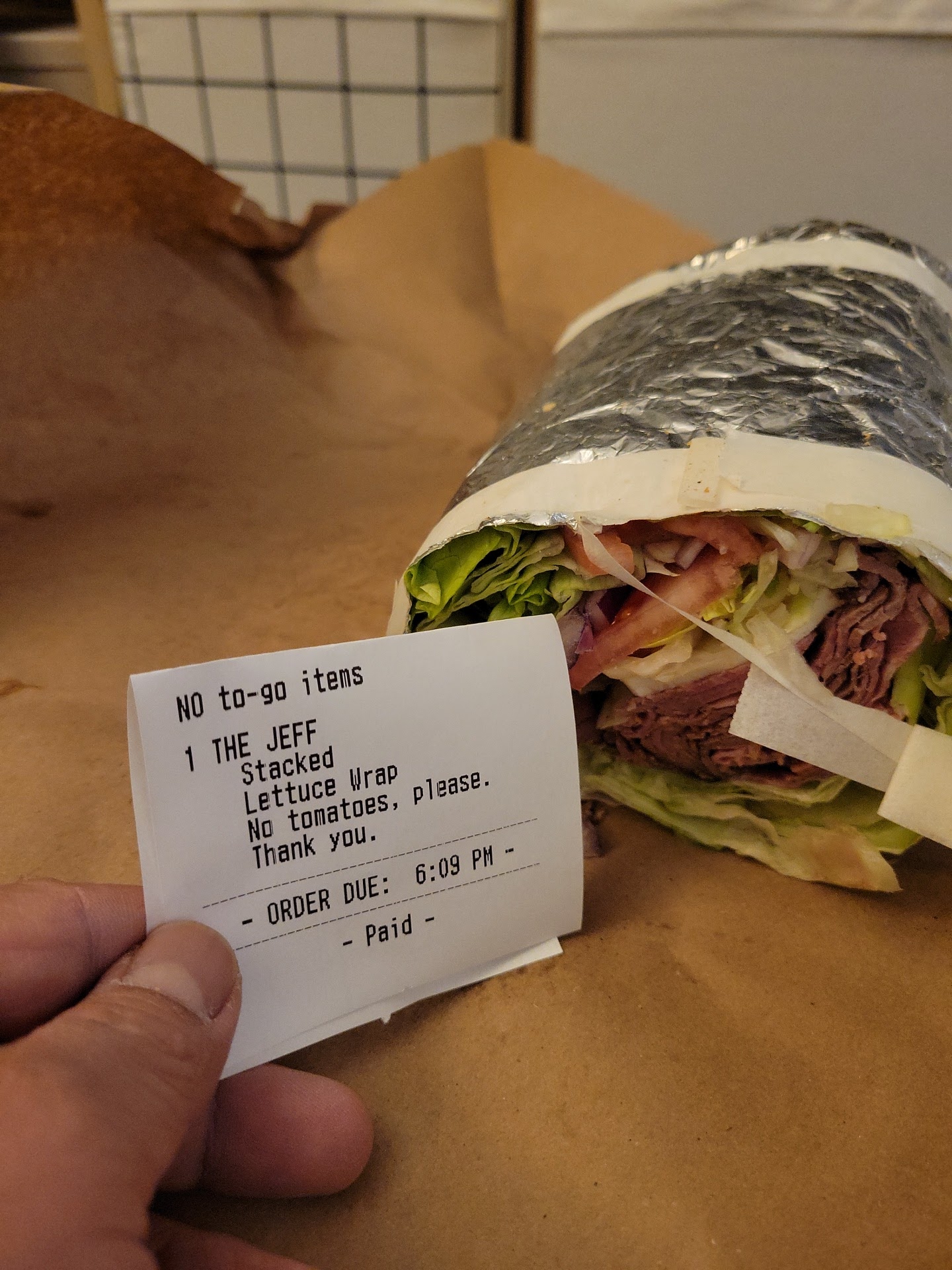 Read moreUpdate: I asked kindly for no tomatoes. I got tomatoes. It's literally the only other detail on the receipt other than the actual sandwich order. I hope this is just a one time thing.