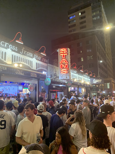 If your the the type of person who has been to the Cask N Flagon on your way to Fenway or stopped at Murphy's Bleachers after leaving Wrigley, then Stan's is the bar for you at Yankee Stadium. Stan's is located in the heart of the 161th Street Business District(maybe say anchor of??), underneath the famous elevated 4 train and across from the footprint of where "the real house that Ruth Built" stood. As you walk up historic River Ave, hearing the shouts and noises of a gameday event at the Stadium, you notice the flow of people going in two directions. To the new Yankee Stadium and to what lies in what once was the shadows of the real house that Ruth built, Stan's Sports bar. With the roar of the train above and the smell of peanuts, pretzels and hot dogs in the air as you walk closer you can hear the chants of "Let's Go Yankee's" from the bar. Stan's is an indoor bar with an outdoor on the street feel. There are no doors or windows to stop the flow of energy from the street to the bar and vice-verse. If what your looking for is wall to wall to Yankee fans, then there is no place like Stan's. Always packed to capacity with fans watching one of 12 T.V.'s, snapping pictures of famous Yankee caricatured on the walls or trying to guess the name of hundreds of pictures of ballplayers and ball parks on the bar top. If baseball is about history and tradition, then Stan's is what being a Yankee fan is all about. You come for the Iced Cold Beer and stay for the level of passion, energy and entertainment the Yankee faithful...