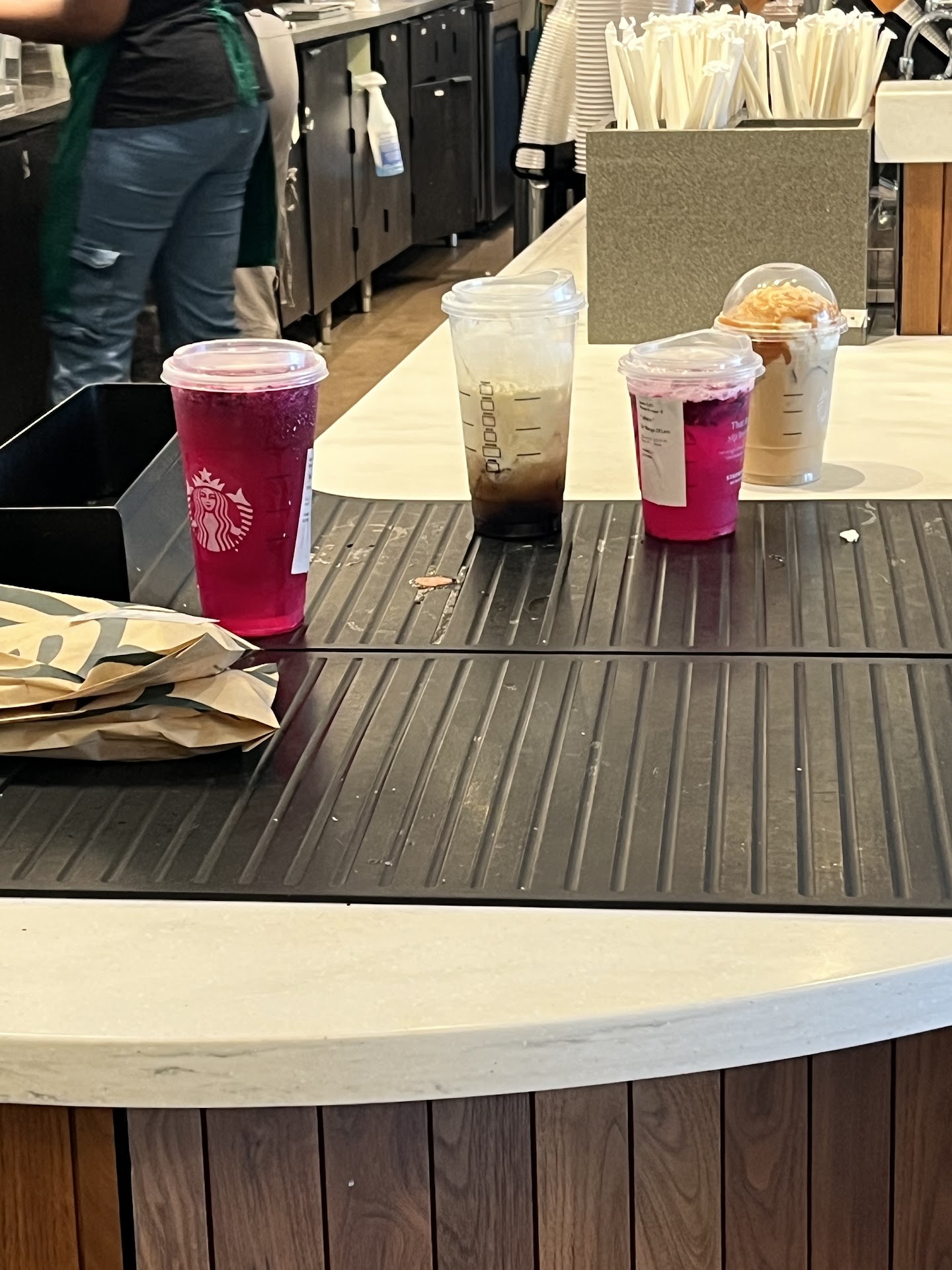 Read moreIf I could give it ZERO stars, I would, but Google doesn’t allow that, you have to put atleast 1 star. My experience with this Starbucks was horrible. I happily made an Uber Eats order with this Starbucks location. My order comes and right away I see something wrong. The bag, yet having a sticker loosely on it, is wipe open. The contents inside consists of a sandwich bag that is wide open, it is not taped shut or even folded shut. The flimsy paper bag my sandwich is in is standing straight up, open to any elements like dust in the drivers car or even outside dust if the uber driver used a bike. I found the way how my food was packaged to be careless, they just threw it in the bag and didn’t care to properly conceal my food for sanitary health reasons. I didn’t eat it. I asked ubereats for my money back. I hope this post makes this Starbucks put more care into packing the food better for safe sanitary delivery. They could have stapled or taped the bag shut better. I have gotten McDonald meals doordashed to me that were impressively sealed shut. I would expect more from a high class expensive coffee shop like Starbucks. The only thing that was covered properly in my bag was my drink, and that’s the only thing I consumed. I waited a long time for my order, just for it to come and I couldn’t enjoy it, I threw it away due to a Starbucks clerk’s carelessness. I was very...