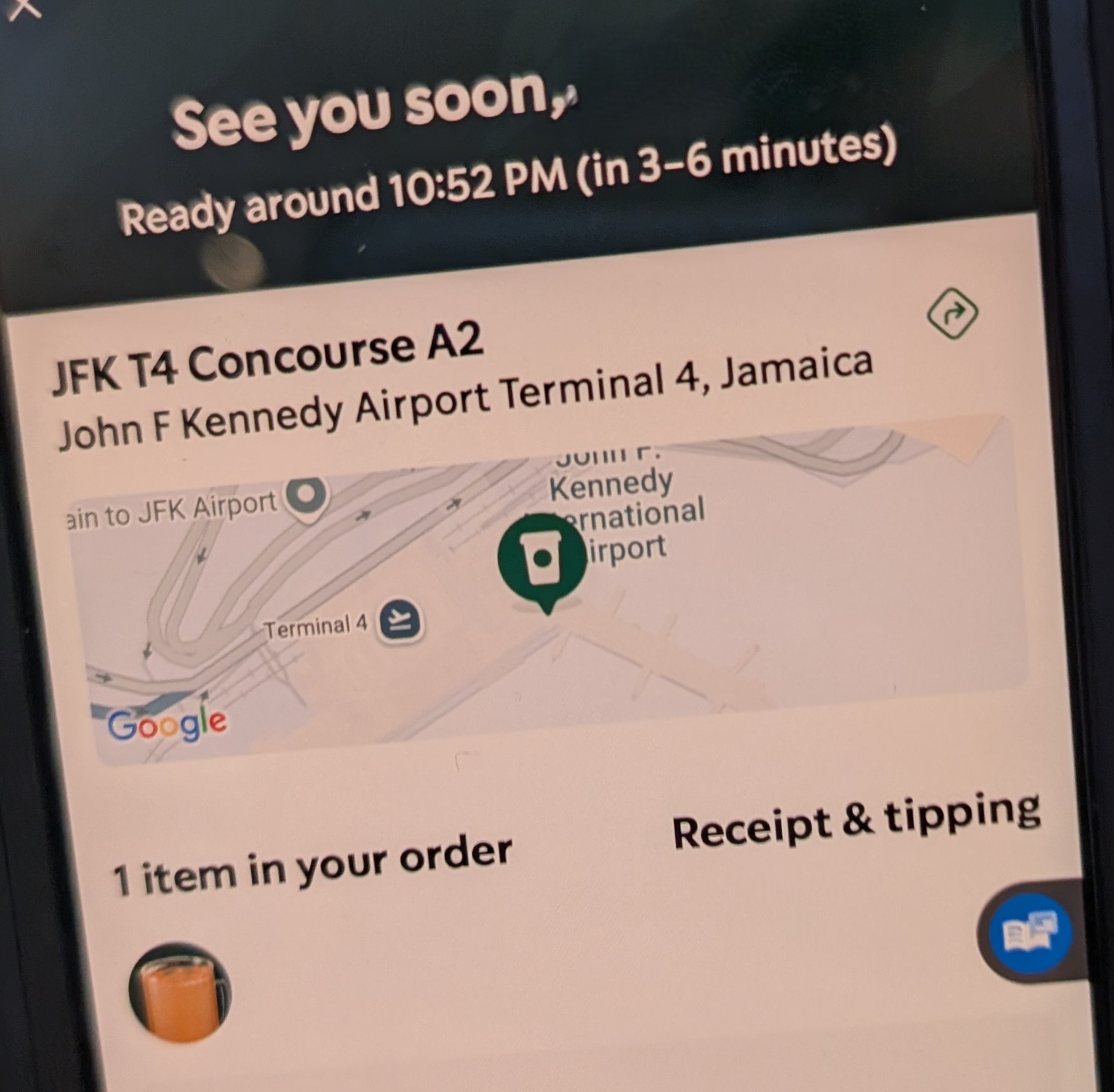 Read moreI understand JFK airport is quite busy and it can be overwhelming. However, as a store their delivery/deliverables NEED a restructuring ASAP. They were slow due to insufficient workers, nasty and rude. As most individuals noted the wait time for mobile orders is outrageous. I ordered on the app at 816 am; per the app it would take my order 17-20 to be completed. Cool this means 1 person could stay back to get our order. Then the others had enough time to stop by the flight gate and place our bags. As I walked out of the security checkpoint The line was in the middle of the corridor by the Christmas tree display. Thus their in person ordering also needs work. Whilst waiting for my order Meer (sp??) raised her voice at a women inquiring about her 2nd order she had been waiting on. Her exact words were “we’re working as fast as we can (only 2 employees making items, 1 cashier). You can either wait a little longer, or get a refund those are the only options.” She then went on to say “we’re not sitting around like little monkey not doing anything”. The crowded area fell a little silent at this remark and some people looked around. This was very rude and very uncomfortable/unwanted interaction about an inquiry of an item she ordered.