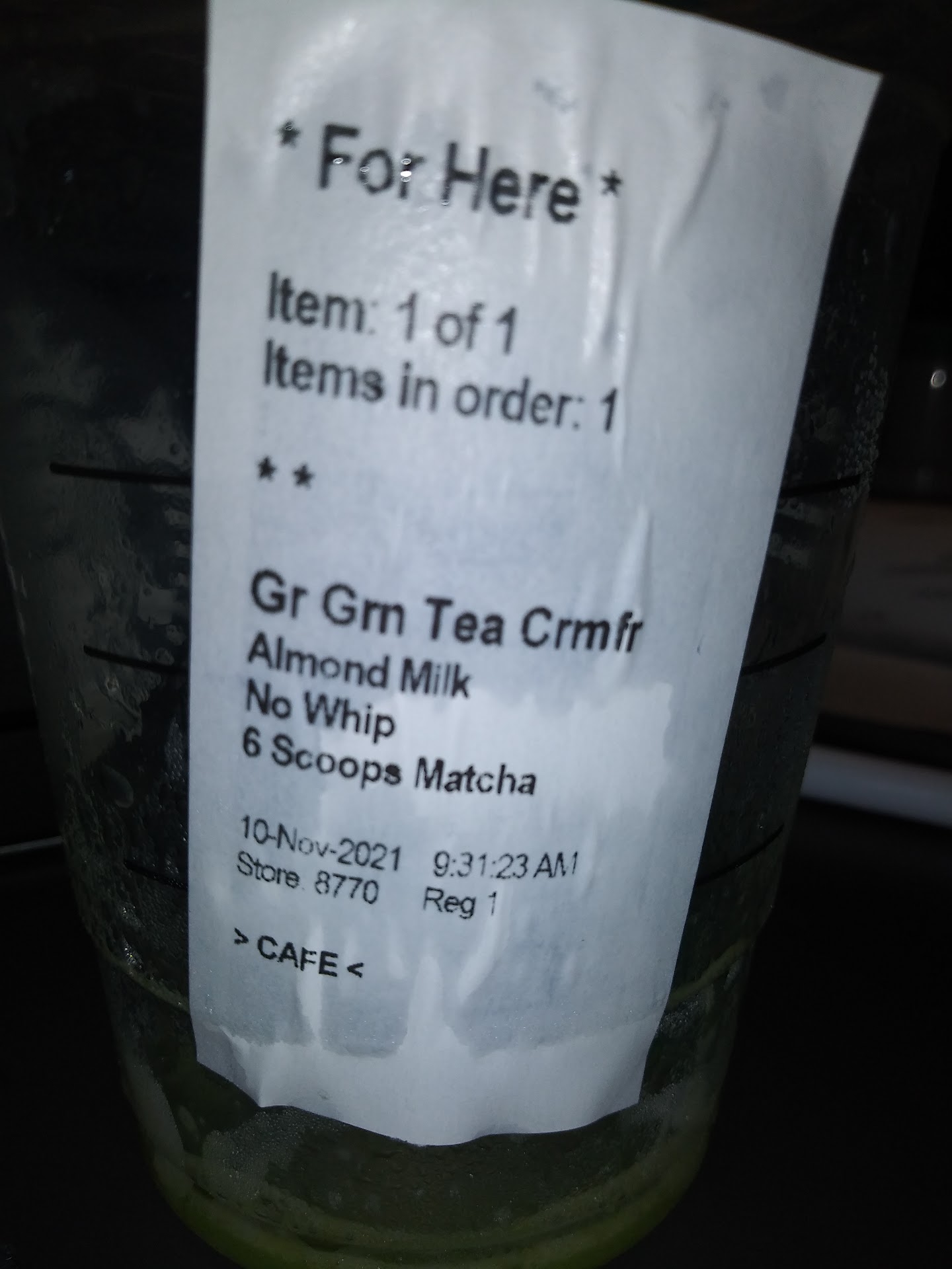 Extra positive note to the fact that the coffee drinks seemed to have beem filled as they used to be. I.e. almost full. In so many Starbucks nowadays the baristas fill the cup only half way.