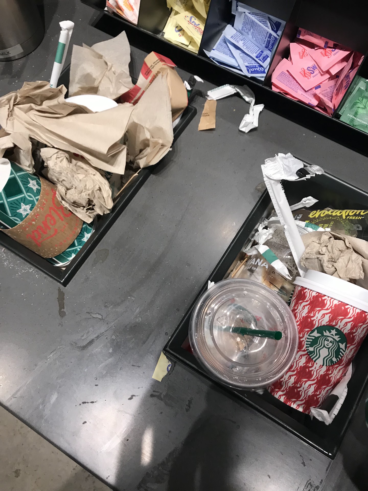 I wouldnât recommend coming here unless youâre just coming in for a frappe. Condiment station is always sticky. Tables and floor donât look very clean either.