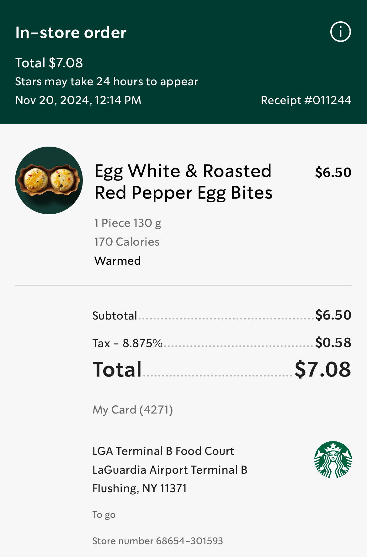 Read moreExpensive, with a long wait time. I ordered a flat white in the smallest possible size - it’s ok but I’d prefer to have a cup that is half as big and pay less. I requested a chocolate cookie and got an unintelligible response from the attendant. I politely said that I couldn’t understand and she repeated the unintelligible response. A coworker intervened, and translated that she was offering to warm my cookie. That was very kind but it would be helpful to understand that request in the first place. I’ve traveled around the world and speak languages other than English but this really does need some improvement. Overall, a far better airport experience than what I had the last time at JFK but Starbucks could do better especially for the prices that are charged. It’s not good...