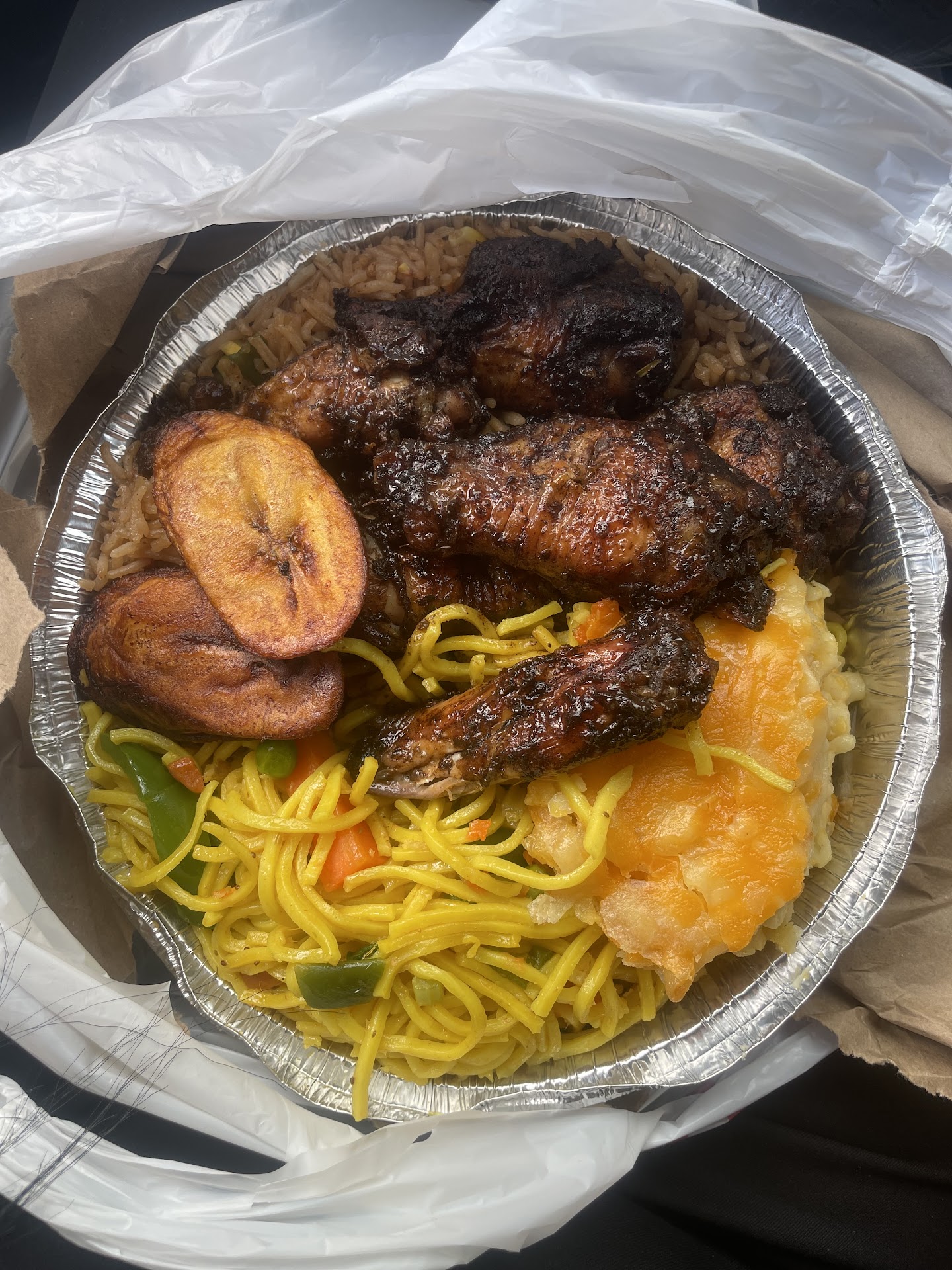 I've also been looking for a place that sells Chow mein as well and I was glad that it was sold here. I got the jerk pork, Chow me in (had to pay extra) and salad. The portion was very generous. They packed it up tight and added condiments. I even got to try a piece of their sorrel cake, and it was GOOD. The jerk pork I would give an 8/10 and the chow mein a 7/10.