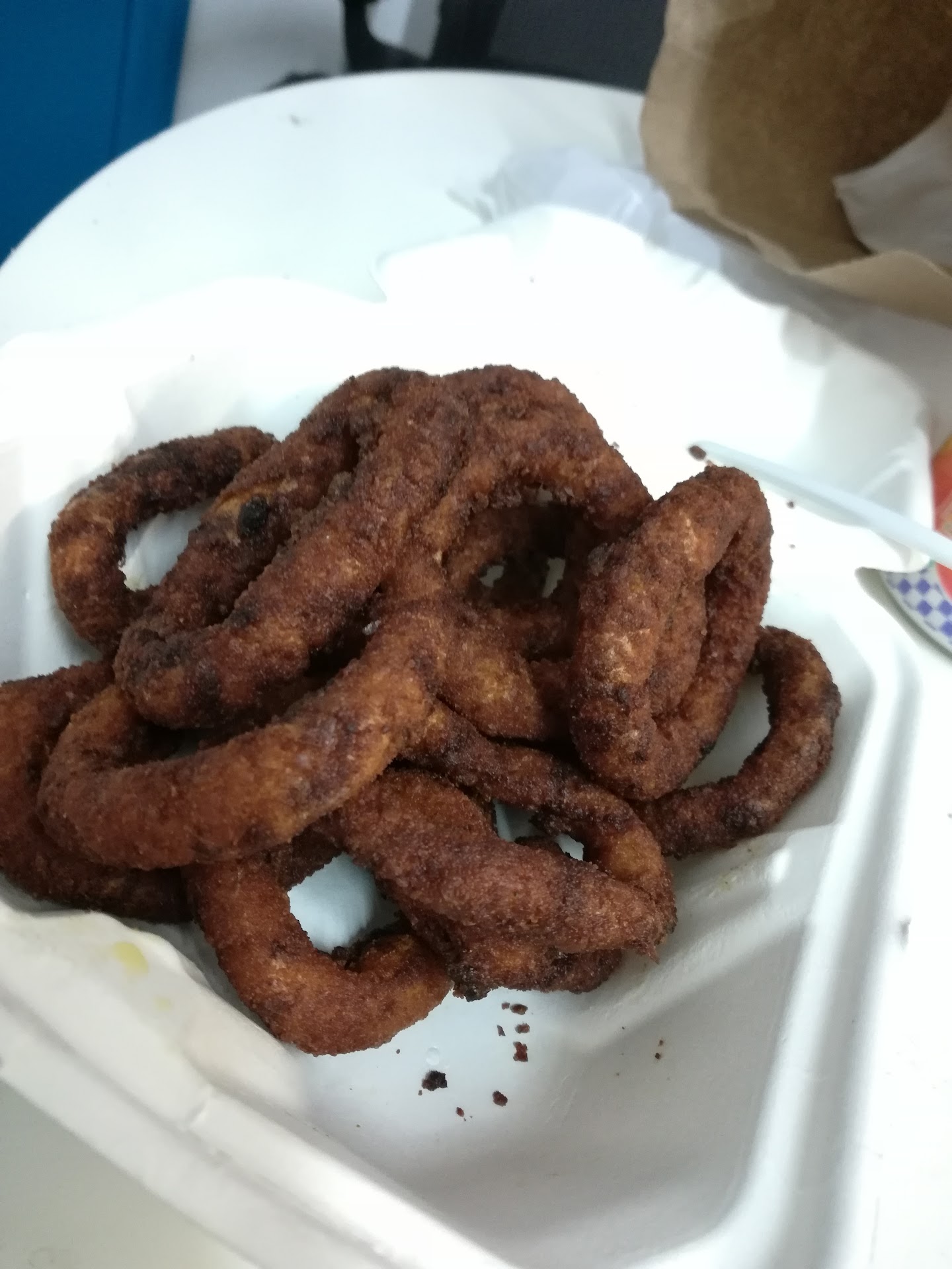 Ordered a sandwich and onion rings. Sandwich was on the expensive side, almost 10 bucks and was pretty small, and nothing special at all that I couldn't have gotten from elsewhere for much less, but when I saw my onion rings, I was lost. The oil must have been extremely dirty. Look at these! How dare they even serve me these, they're disgusting looking. I now have the runs and I'm posting this from the toilet because of the entire meal, but probably mostly from the onion rings.