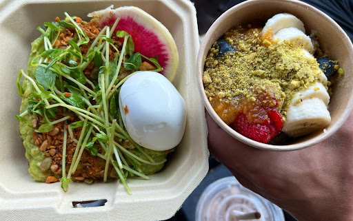 The decor suits the earthy farm to table vibe going on with plants everywhere and tables and chairs made from restored wood. In the backroom if I'm not mistaken they sell plants etc. Yes, the vibe is immensely chill. I came here for breakfast and ordered the Avocado Smash on Shewolf, White Fish on Shewolf and the Yogurt Pot. Also ordered a cappuccino and mocha. The employee taking my order was friendly and very understanding (because I was indecisive).