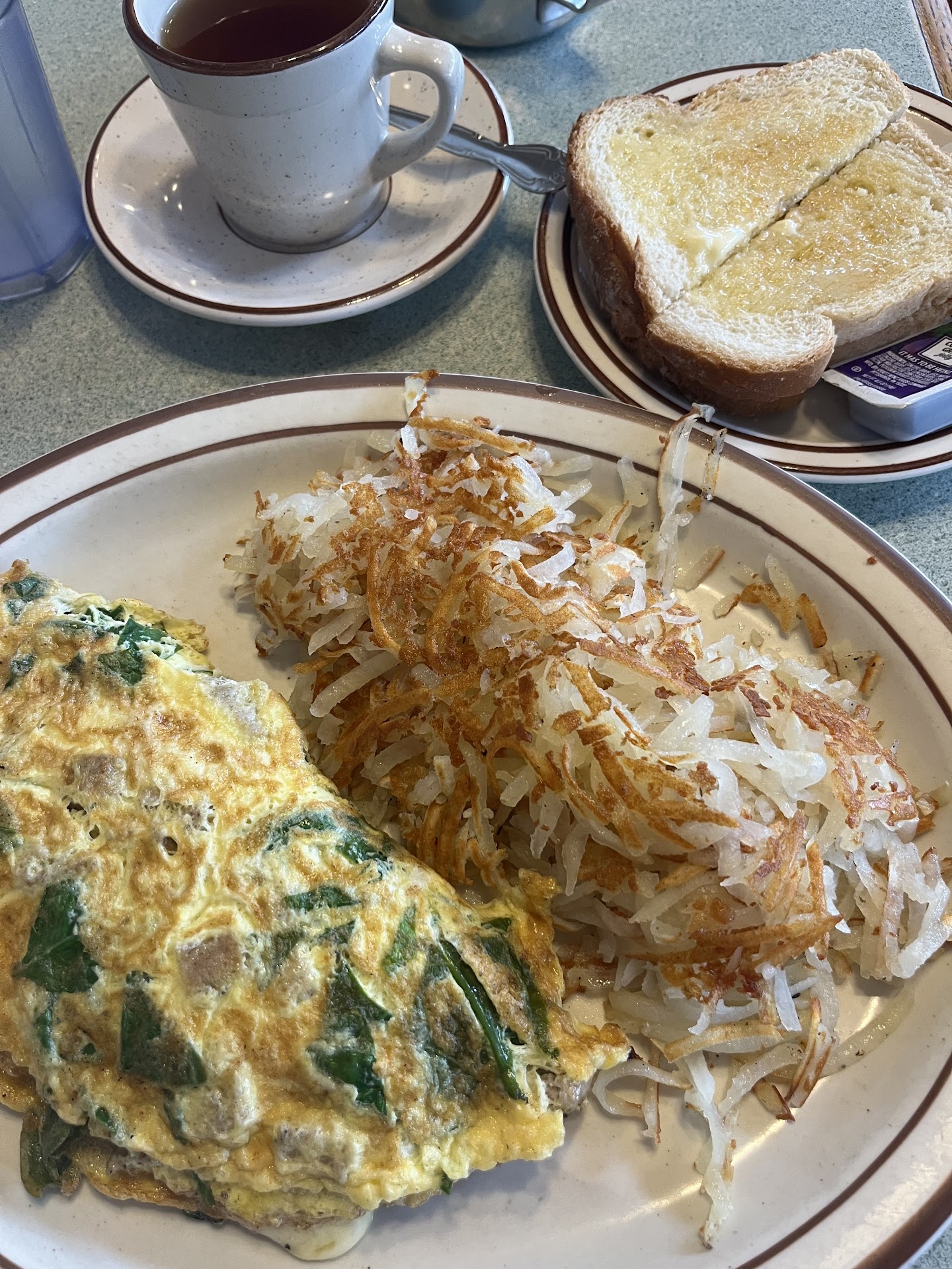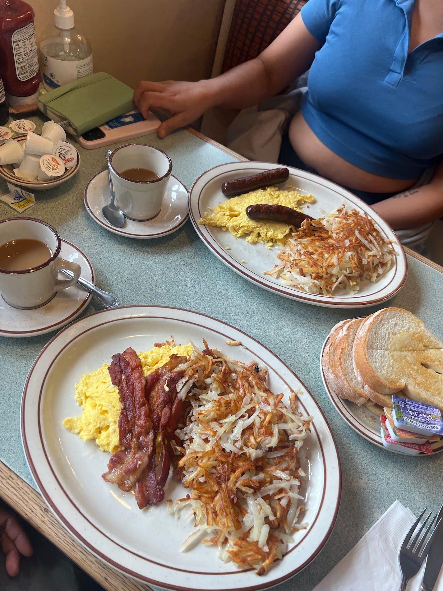 Service was friendly, but kind of thoughtless - I had to ask for everything twice even though it was extremely quiet - and no one thought to ask why I only took 4 bites total from 2 plates. I guess they’re used to people not finishing their plates; lady that was finishing up next to me left all her hash browns and half her eggs uneaten.